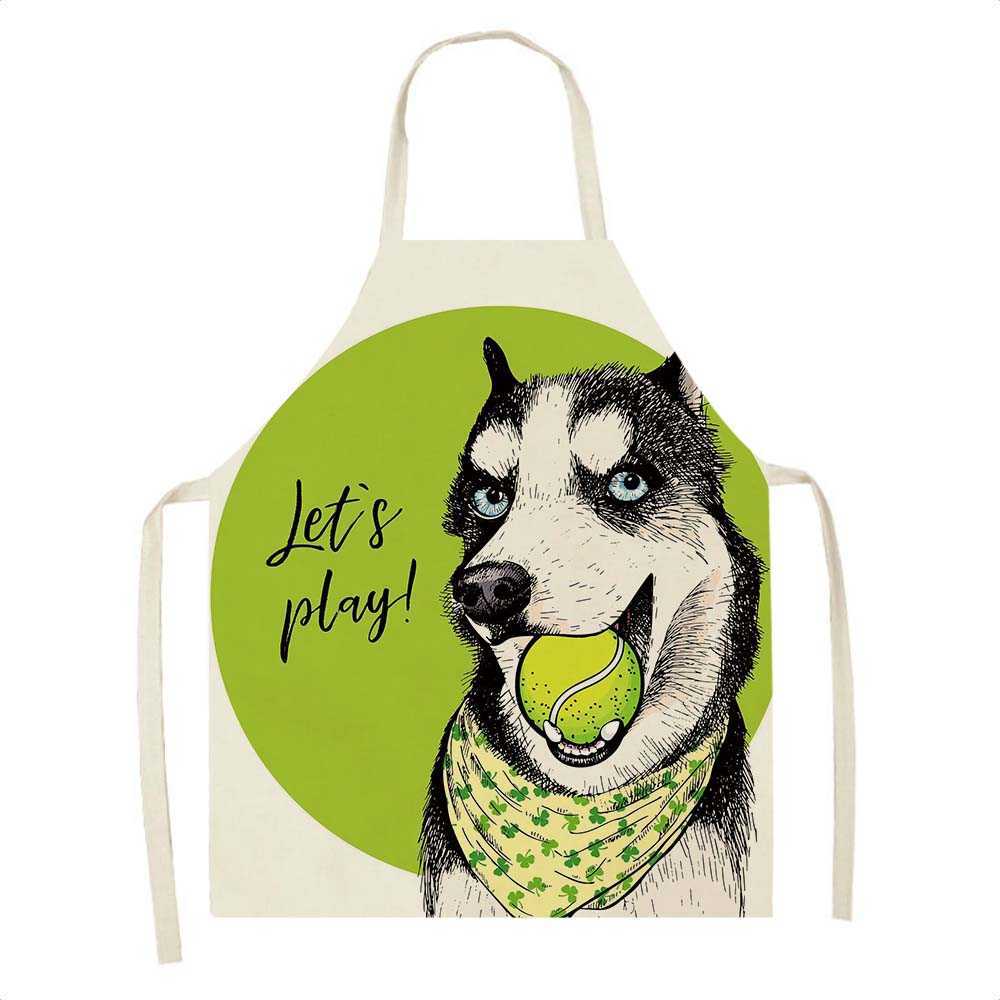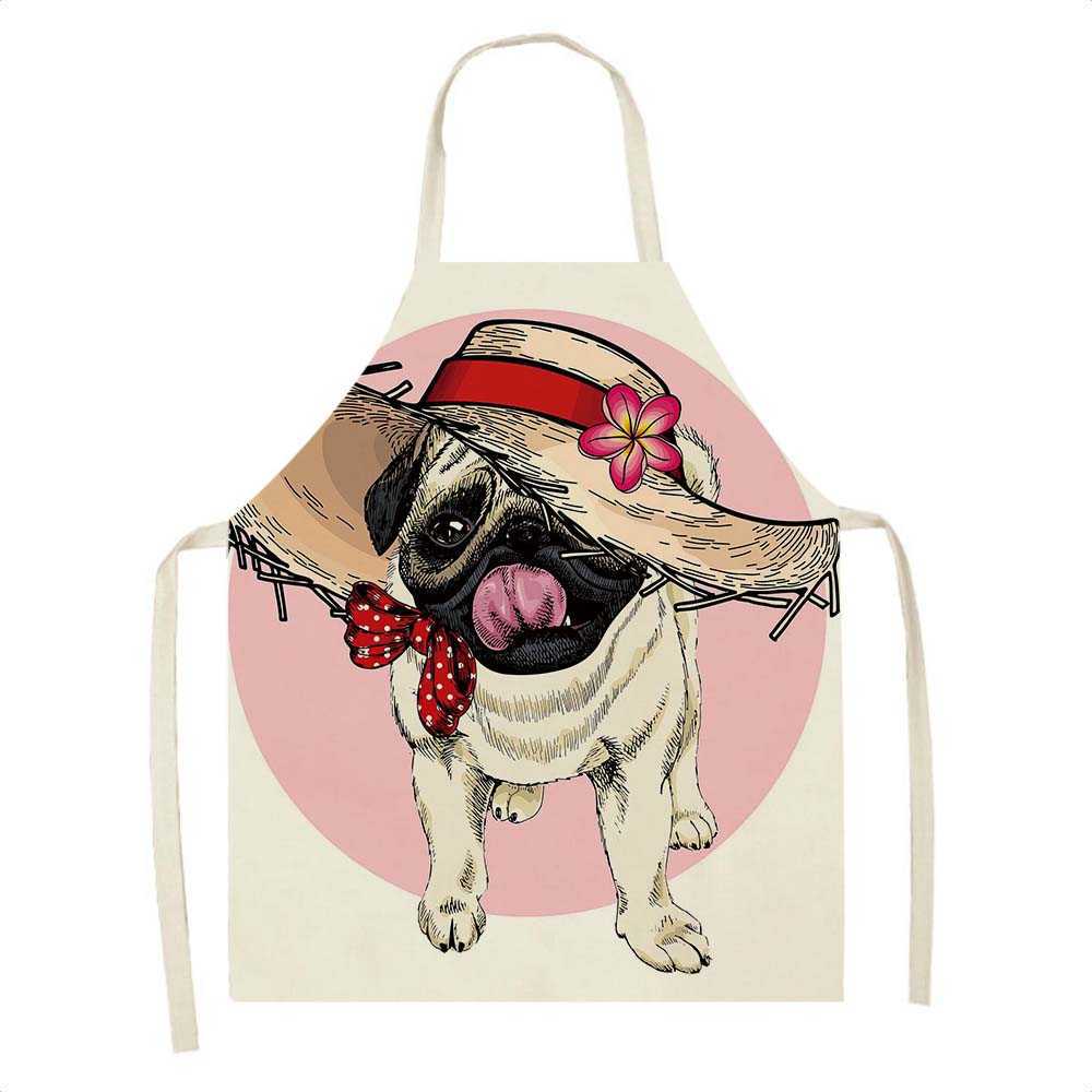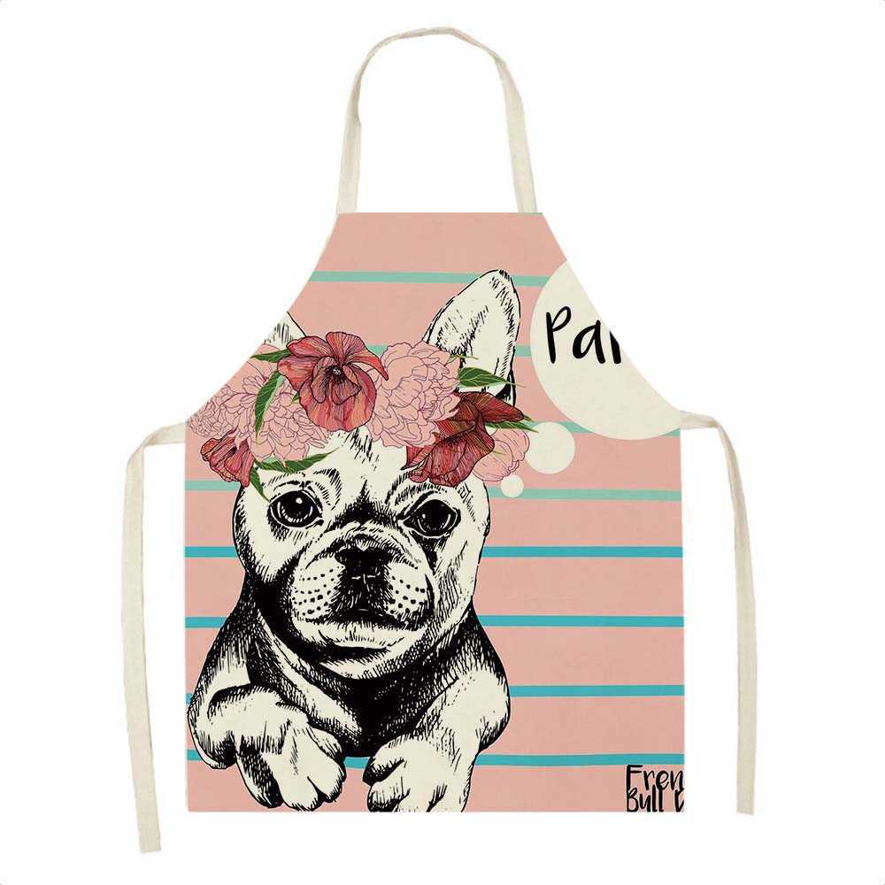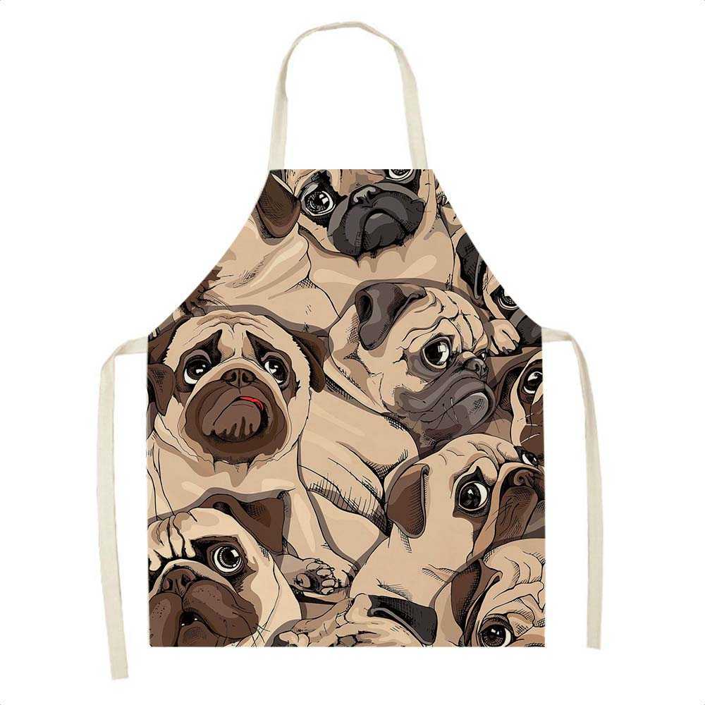 速卖通热销卡通狗狗印花亚麻无袖围裙 时尚亲子防油防污罩衣代发