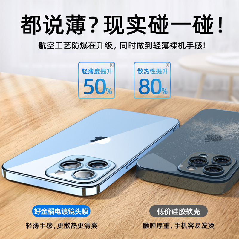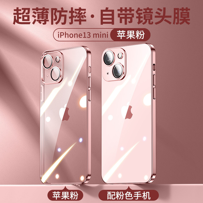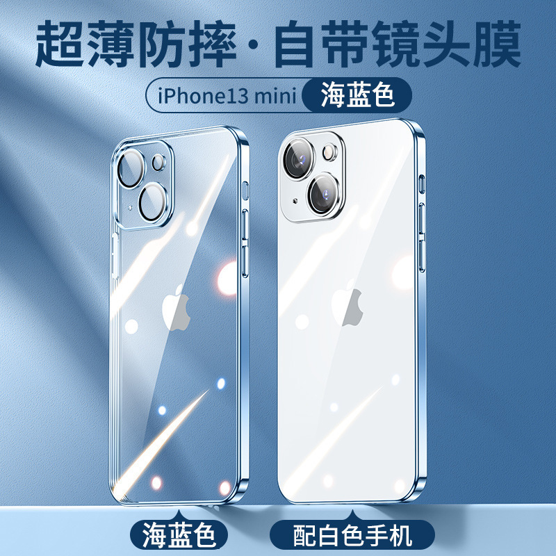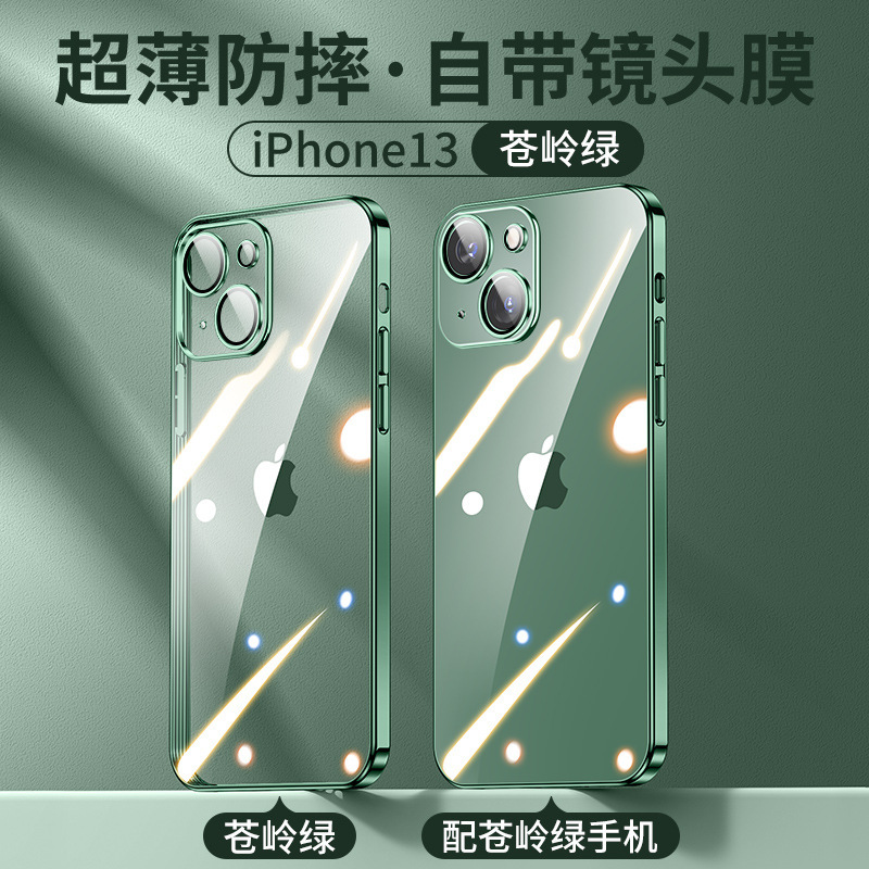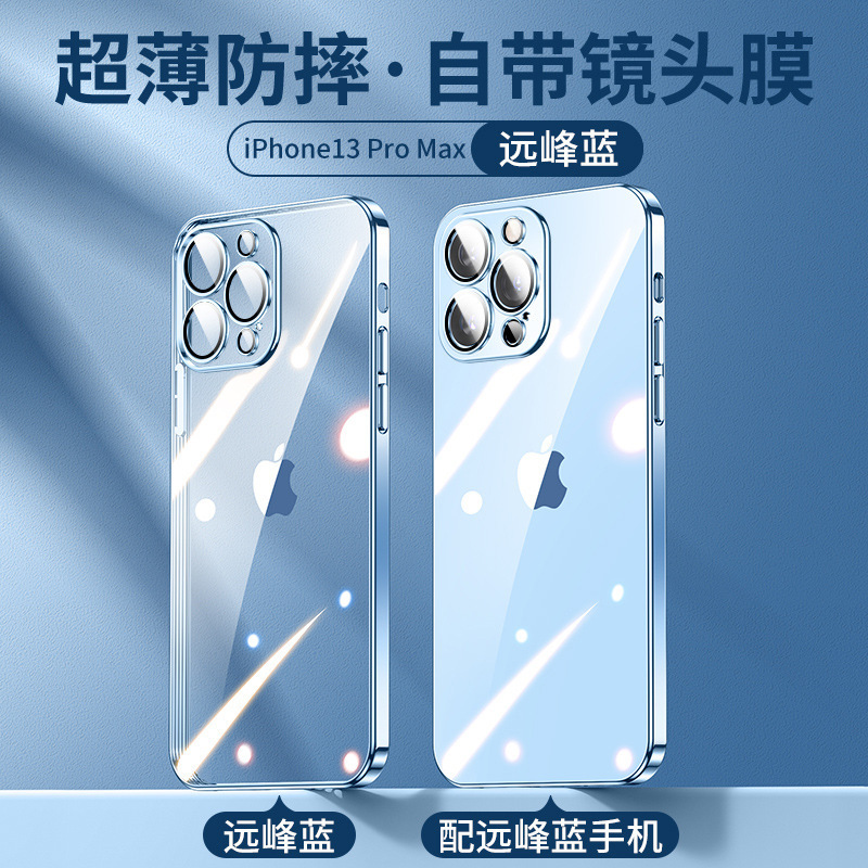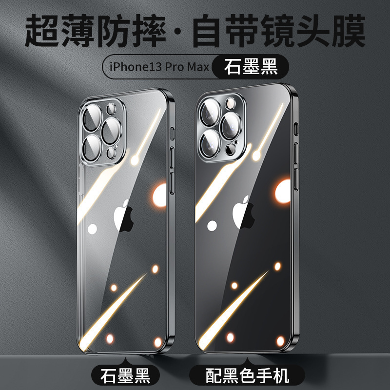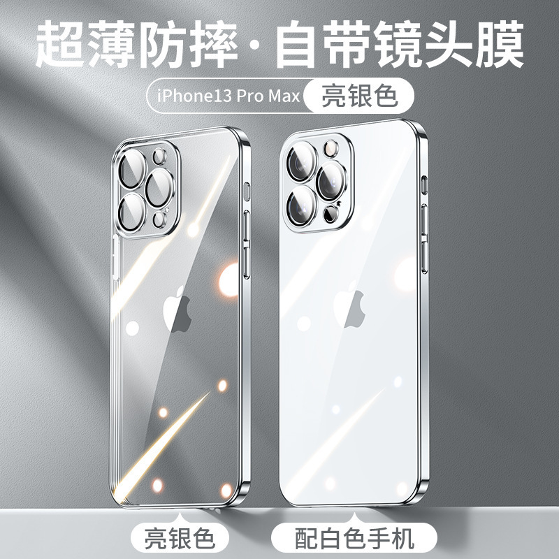 适用iPhone14手机壳tpu直边电镀镜头膜苹果13Pro透明全包保护软套