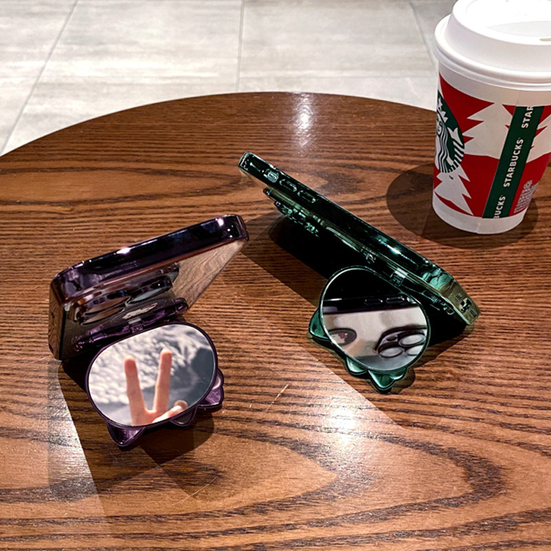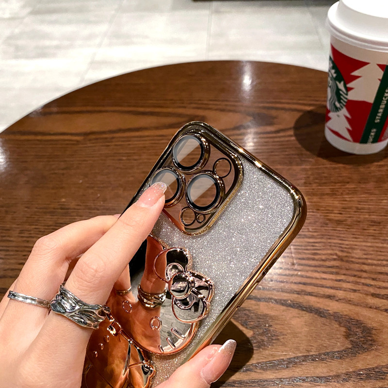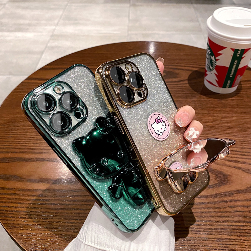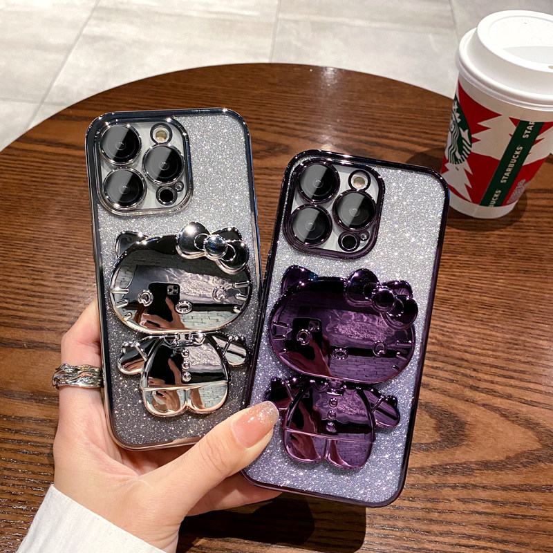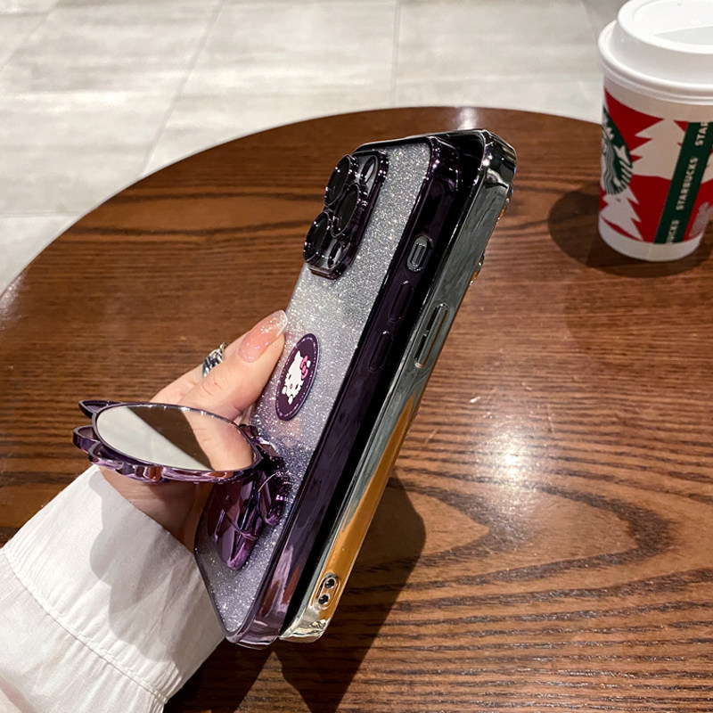 适用iPhone14ProMAX手机壳猫咪补妆镜支架苹果14电镀自带镜头膜13