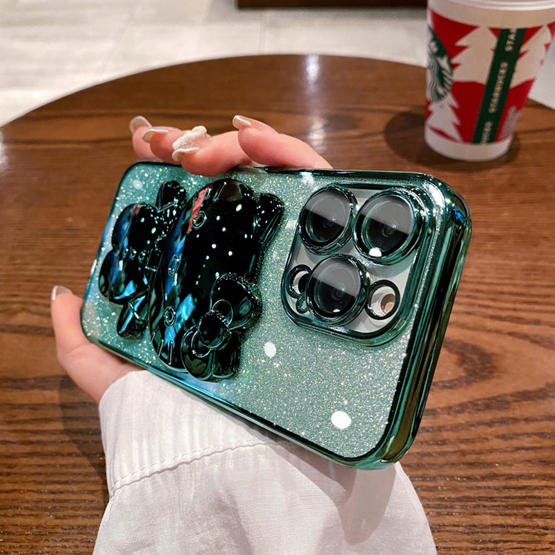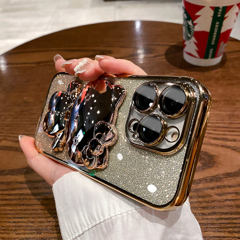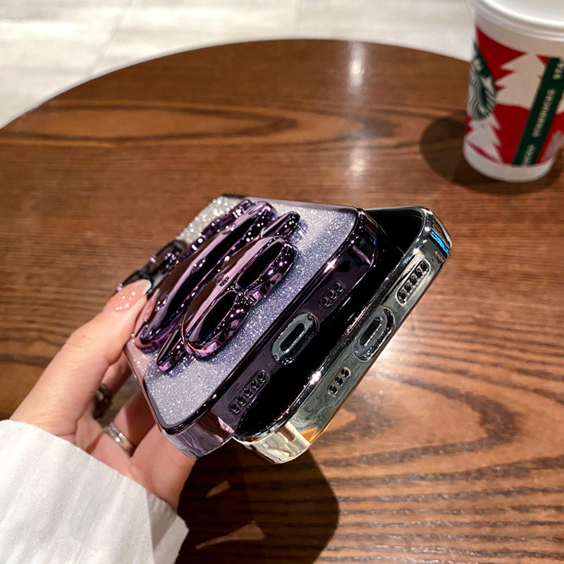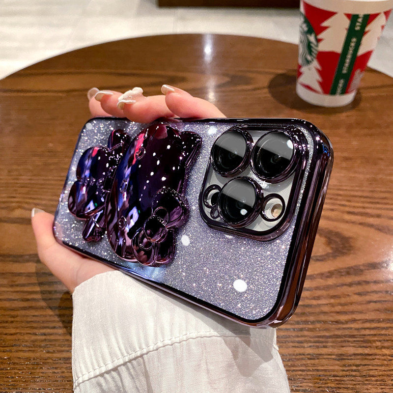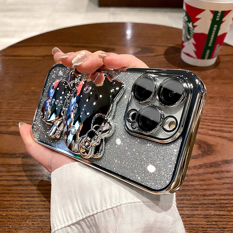 适用iPhone14ProMAX手机壳猫咪补妆镜支架苹果14电镀自带镜头膜13
