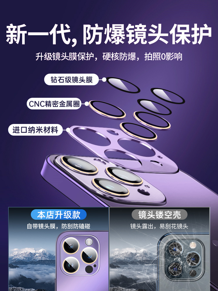 适用iPhone14ProMax手机壳磨砂亚克力硬壳苹果13自带镜头膜保护套