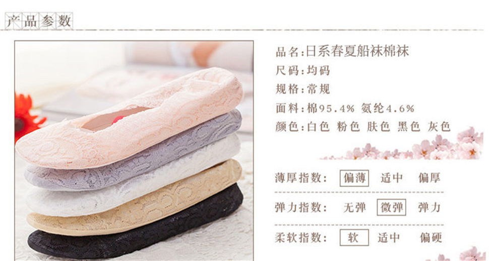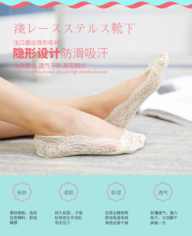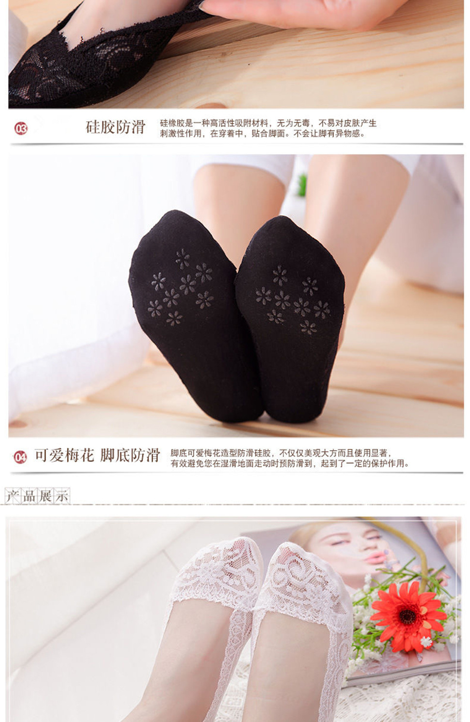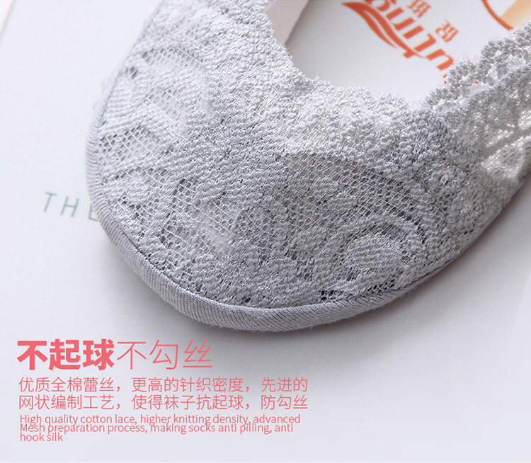 蕾丝船袜女花边短袜浅口夏季薄款棉底袜子女韩版硅胶隐形防滑袜