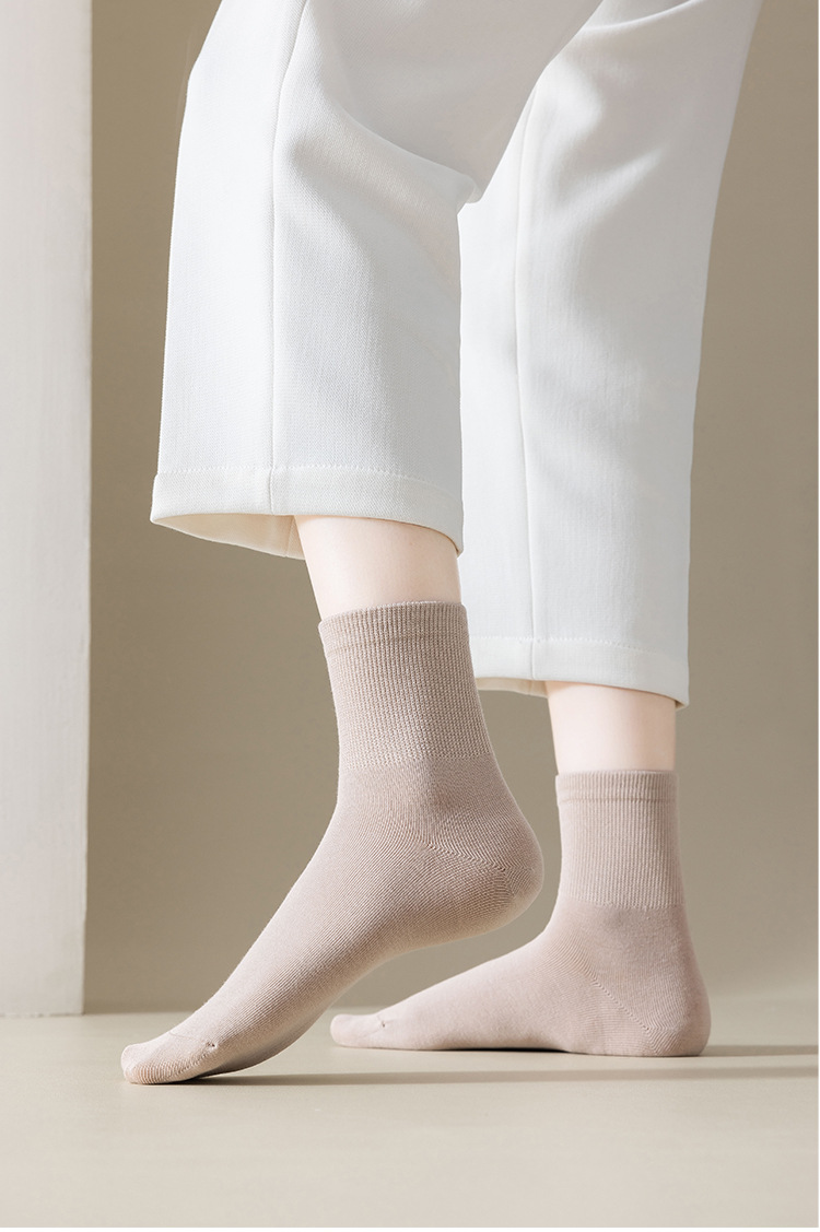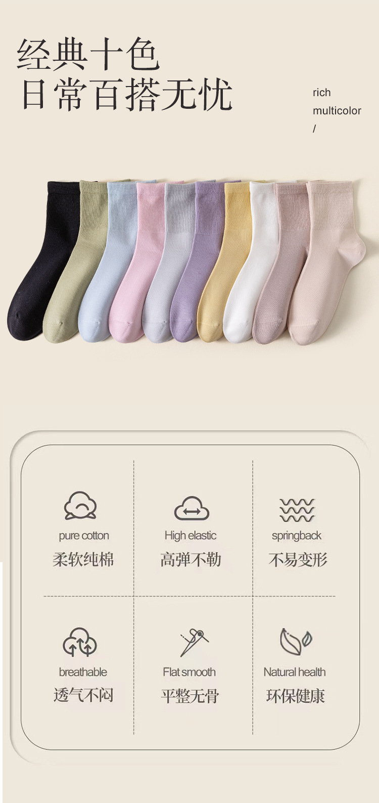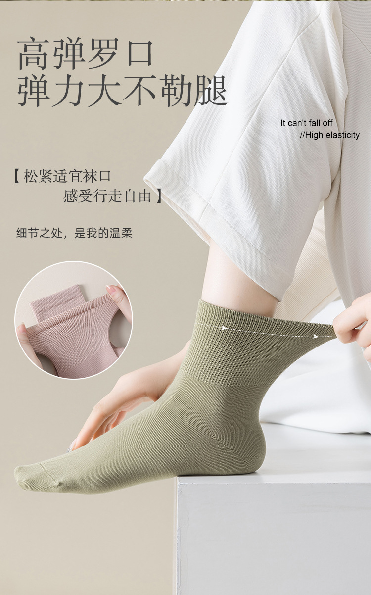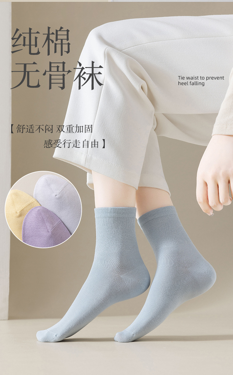 袜子女春秋四季款中筒袜纯色纯棉无骨袜高碳透气松口百搭休闲棉袜