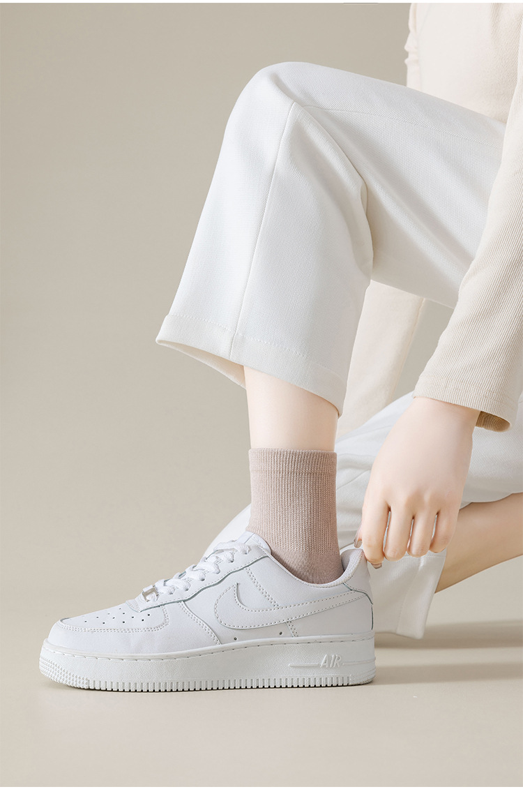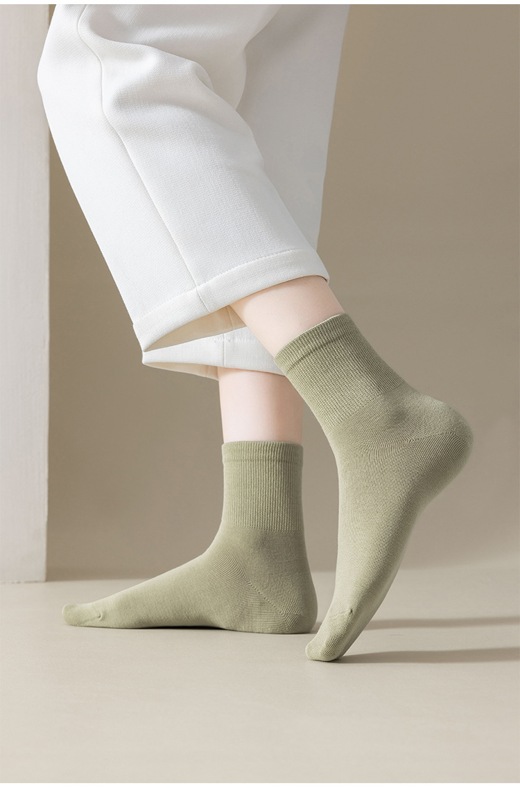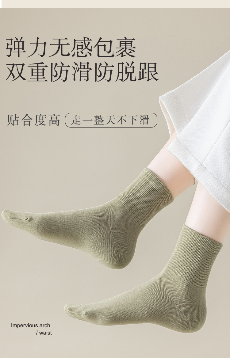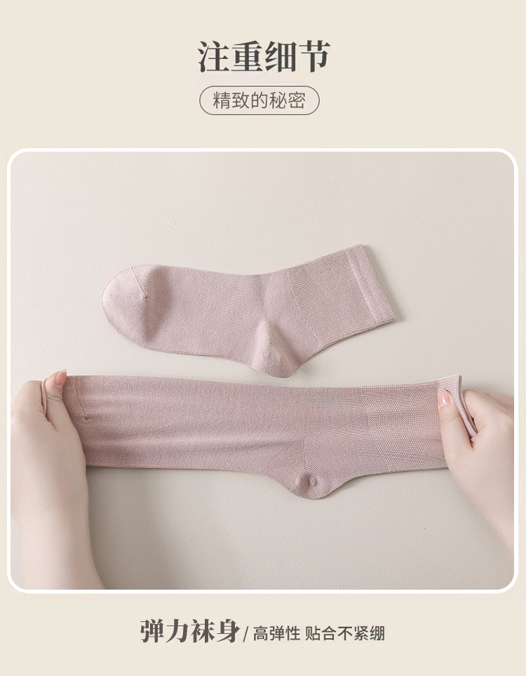 袜子女春秋四季款中筒袜纯色纯棉无骨袜高碳透气松口百搭休闲棉袜