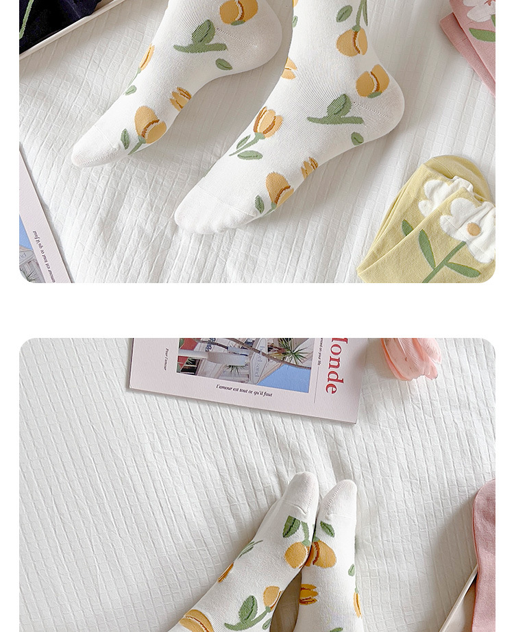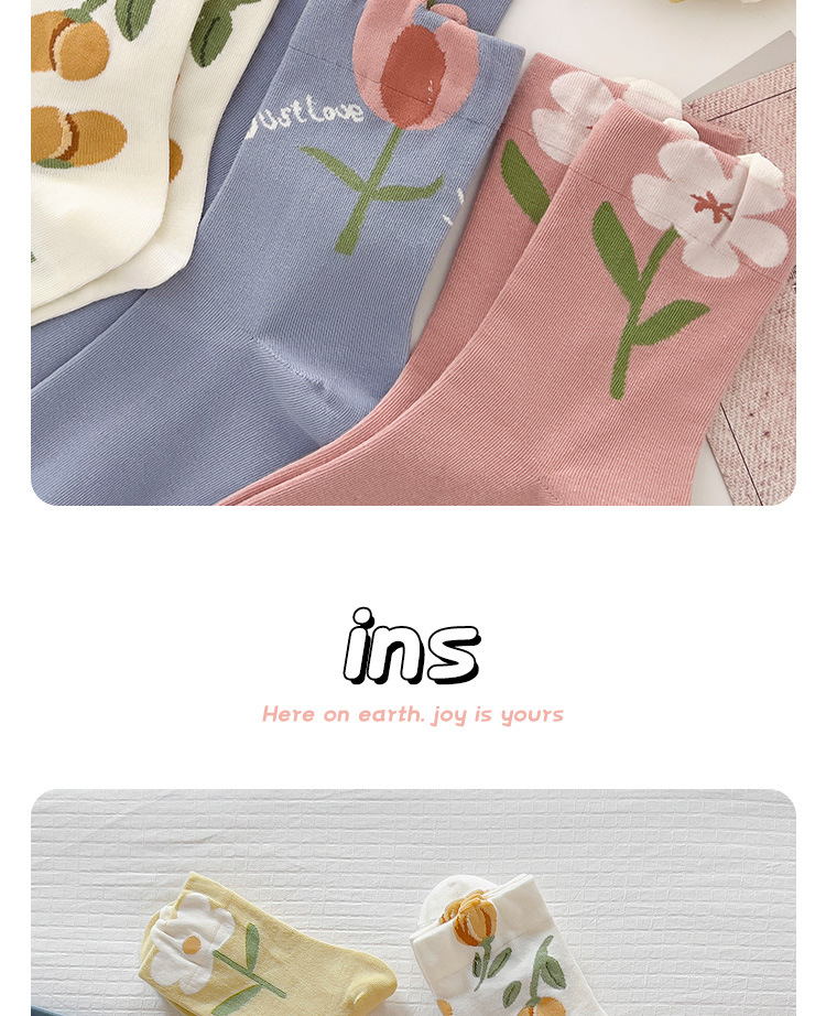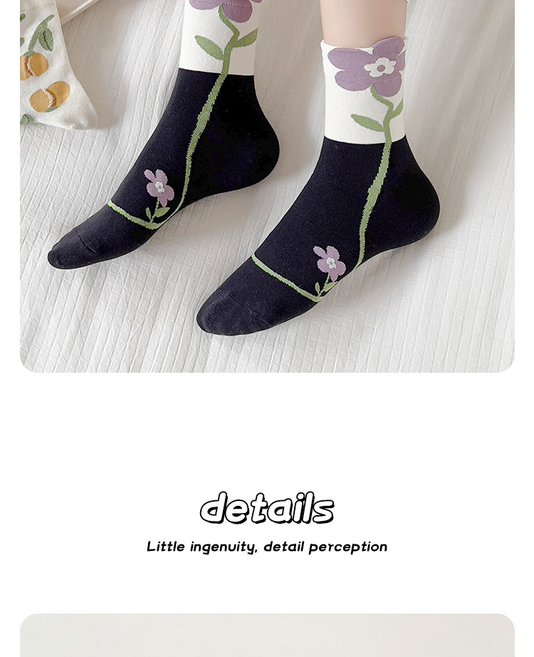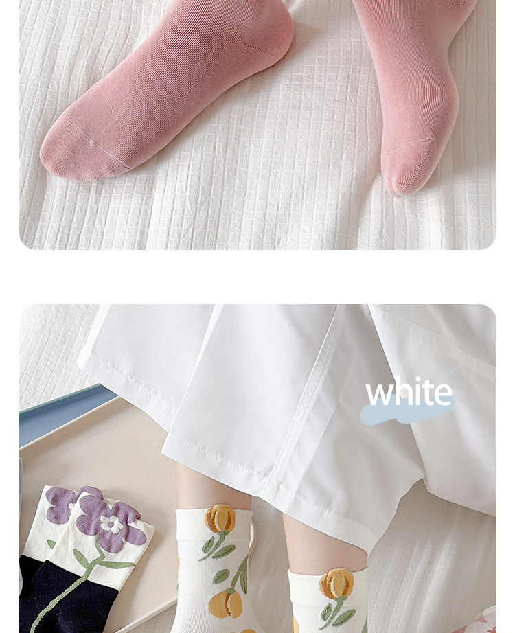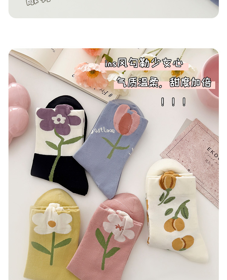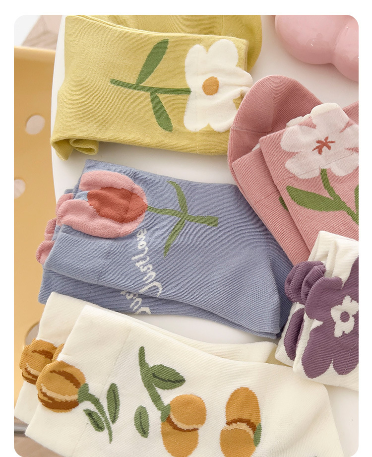 立体花朵袜子女春秋日系长袜复古月子袜秋冬季产后粉色花朵中筒袜