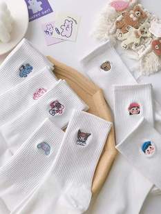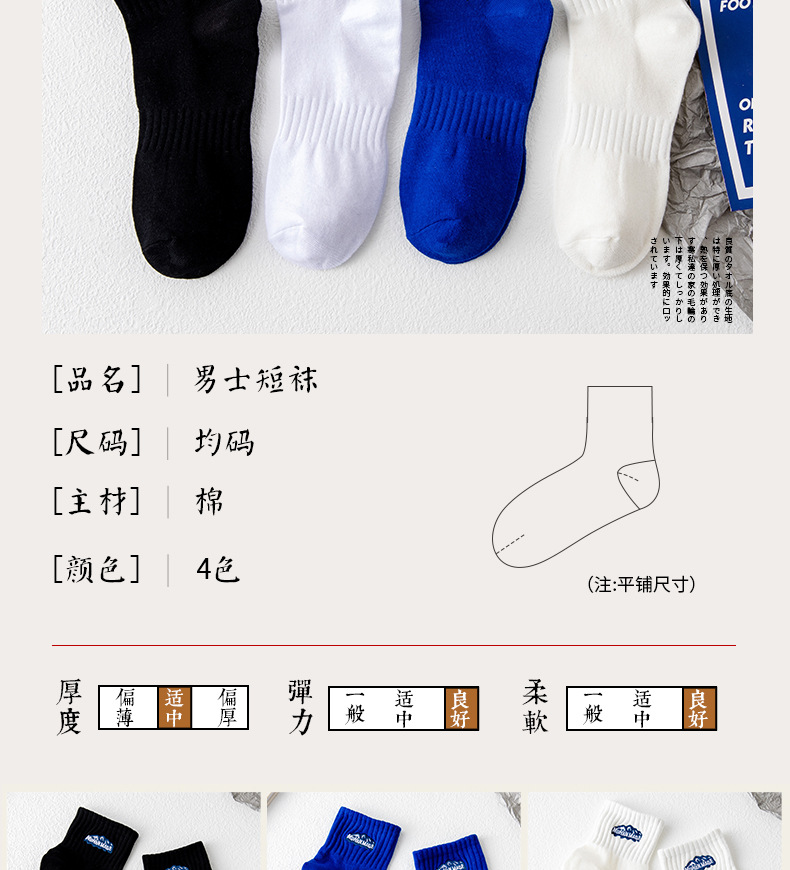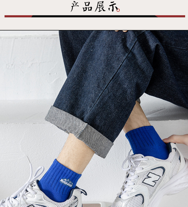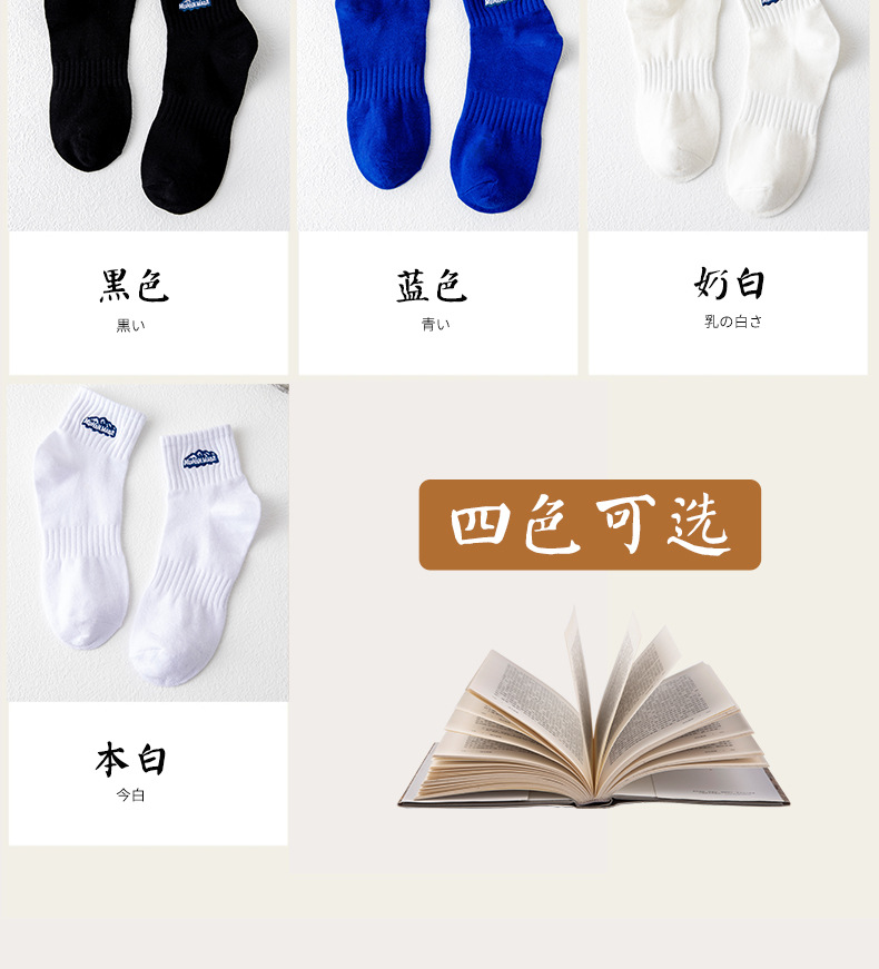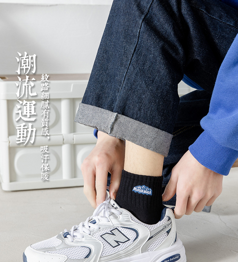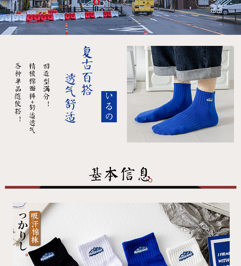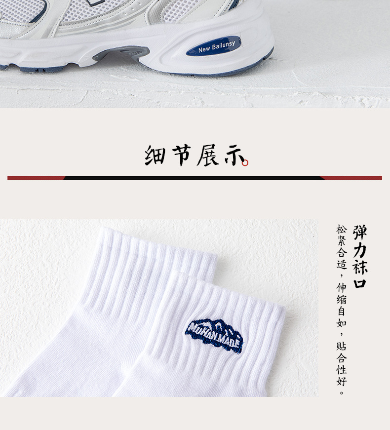 袜子男秋冬季纯棉雪山刺绣黑白色运动短袜男士跑步中筒袜女袜批发