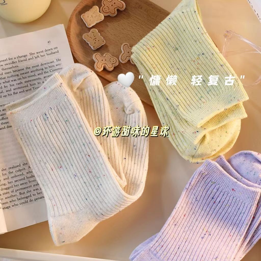 200针袜子女中筒点点袜小红书同款可爱纯色简约百搭学院风棉袜