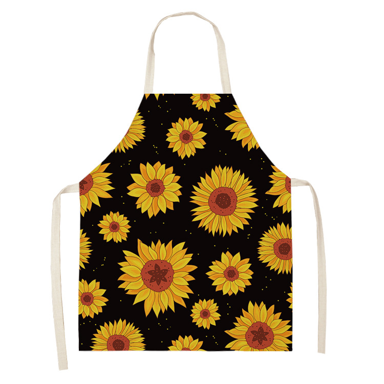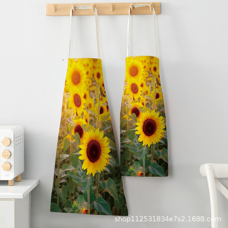 印花小清新向日葵系列多功能厨房棉麻围裙印花图案LOGO厂家批发