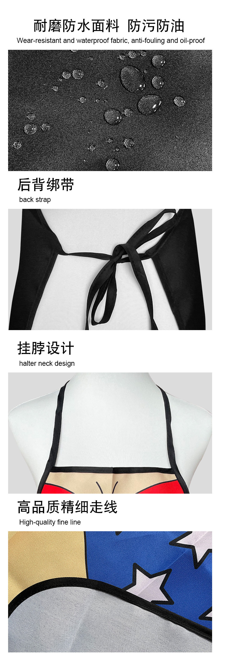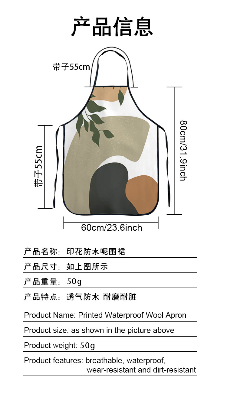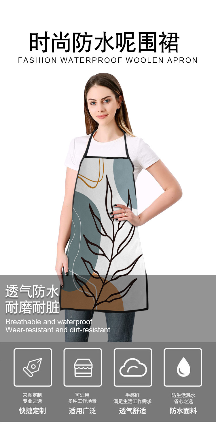 新款款跨境涤纶数码印花印花围裙防水防油工作服家用厨房无袖罩衣