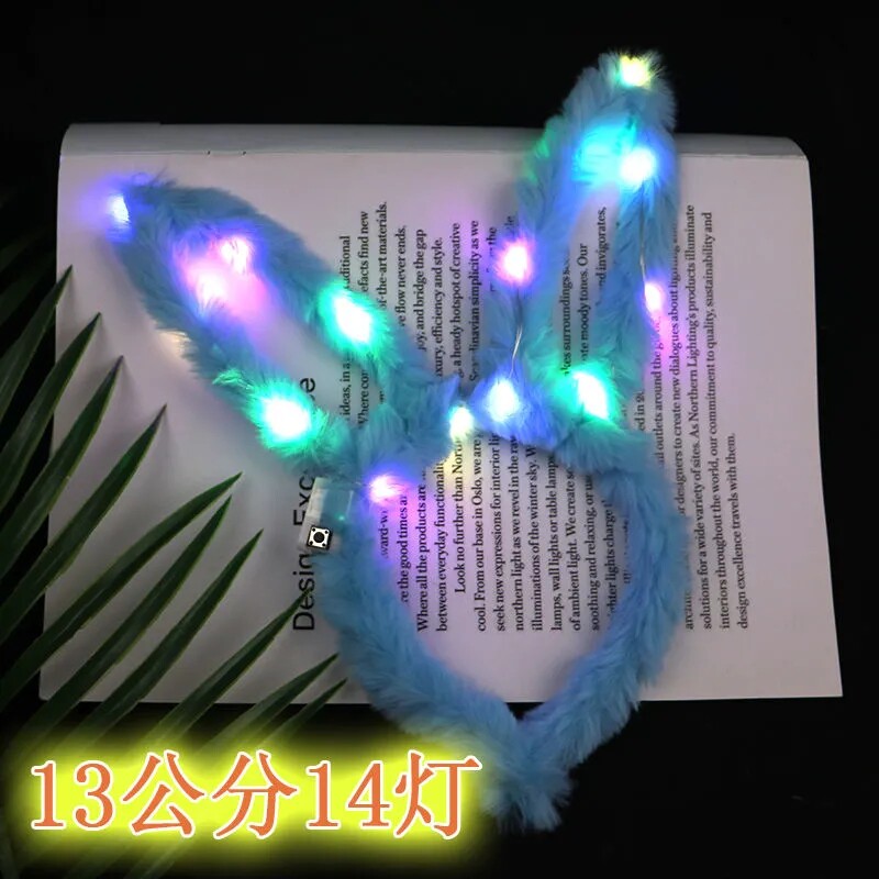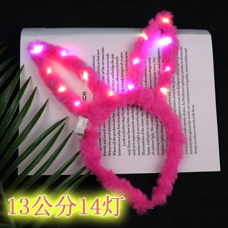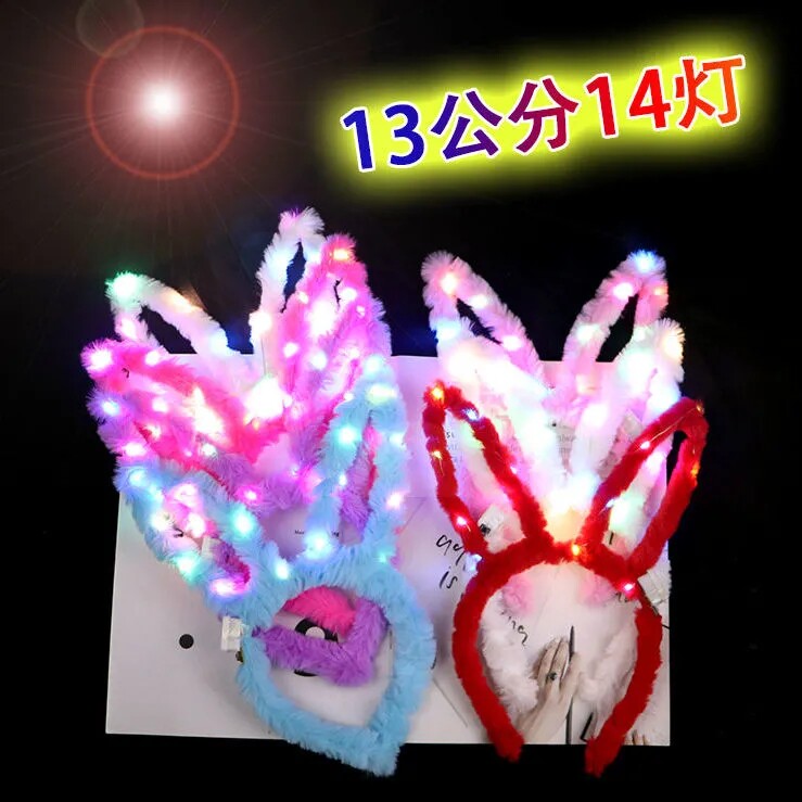 14灯加长发光毛绒兔耳朵可爱头箍闪光儿童夜市女童玩具摆地摊礼品
