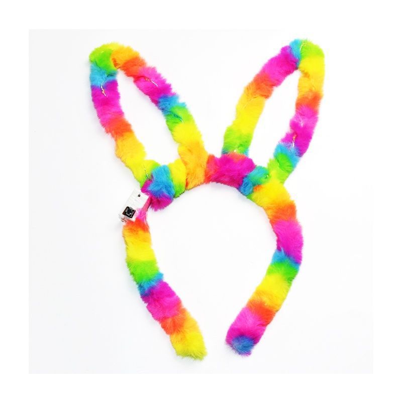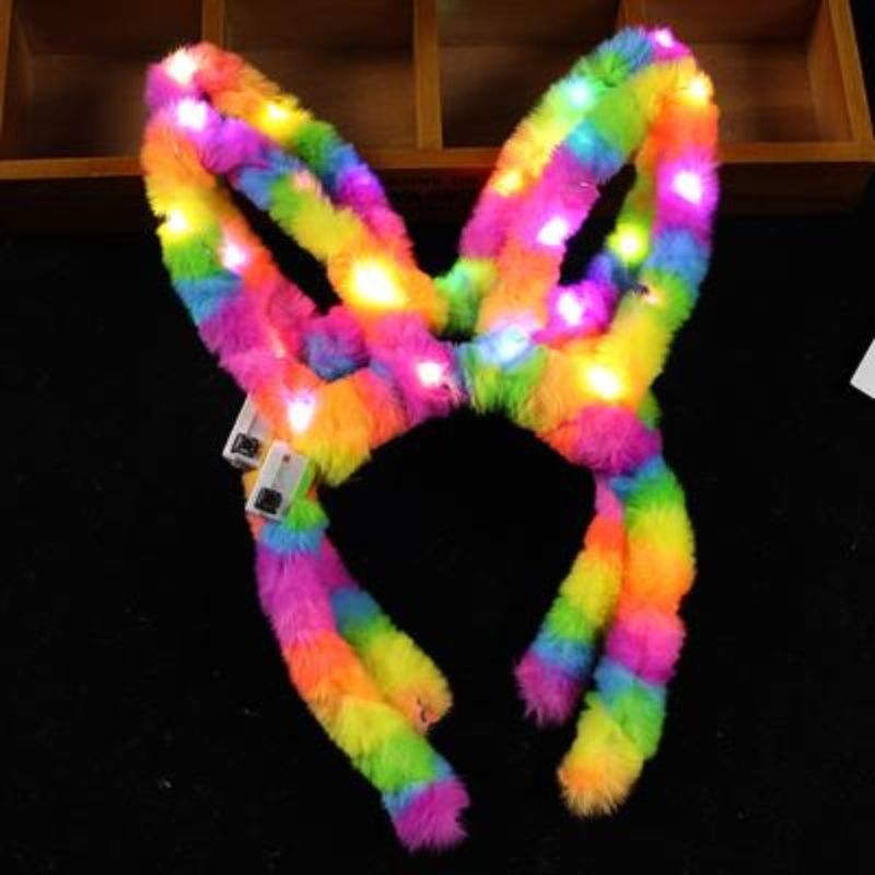 新款14灯加长闪光彩虹毛绒兔耳朵头箍女发光头饰热销地摊玩具批发