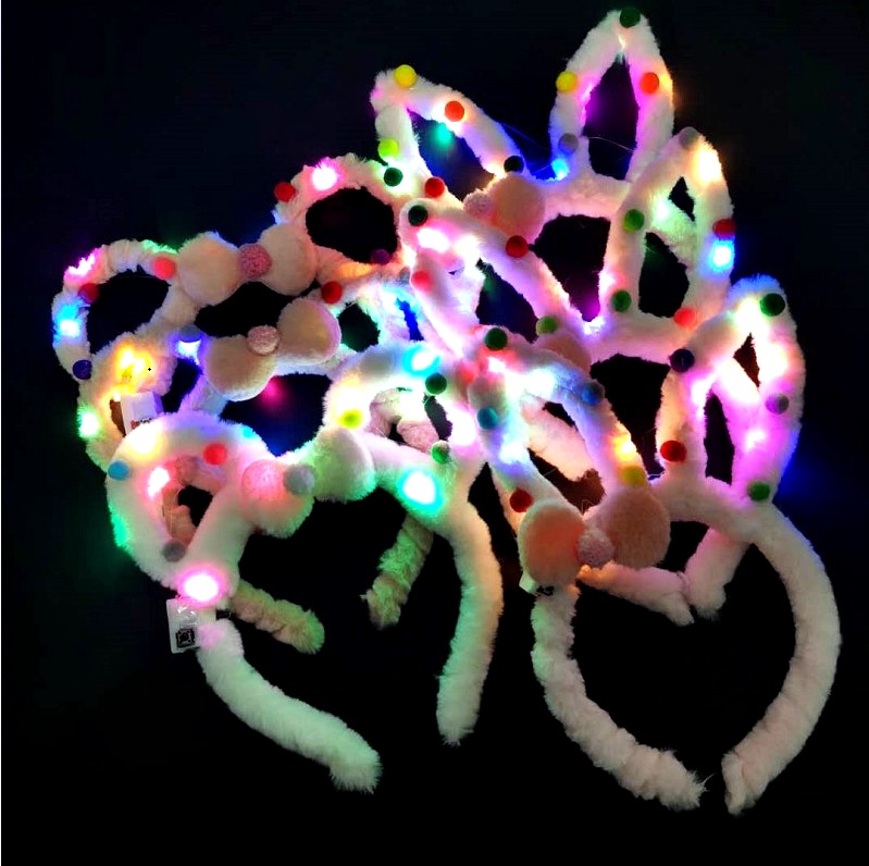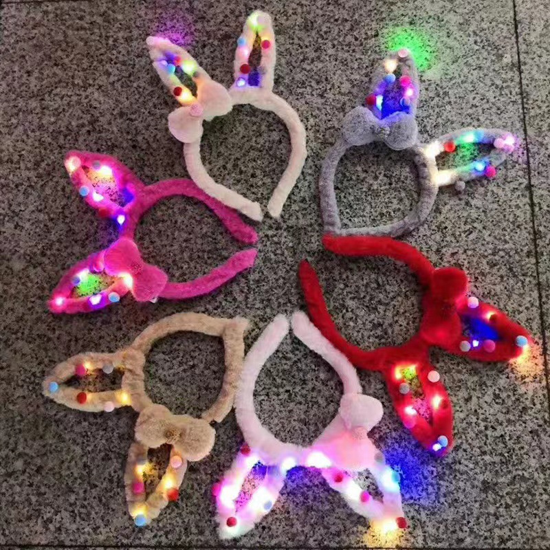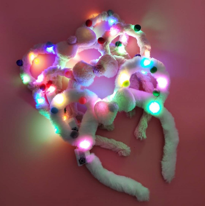 新款超长毛绒发光兔耳朵米奇发箍地推热销产品厂家跨年爆款10灯