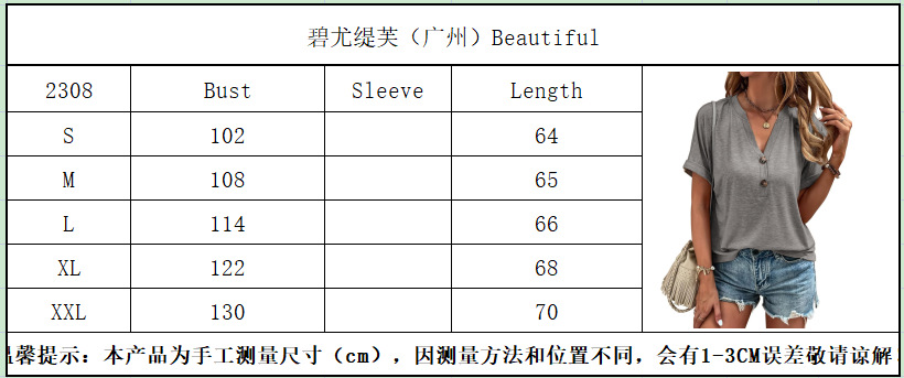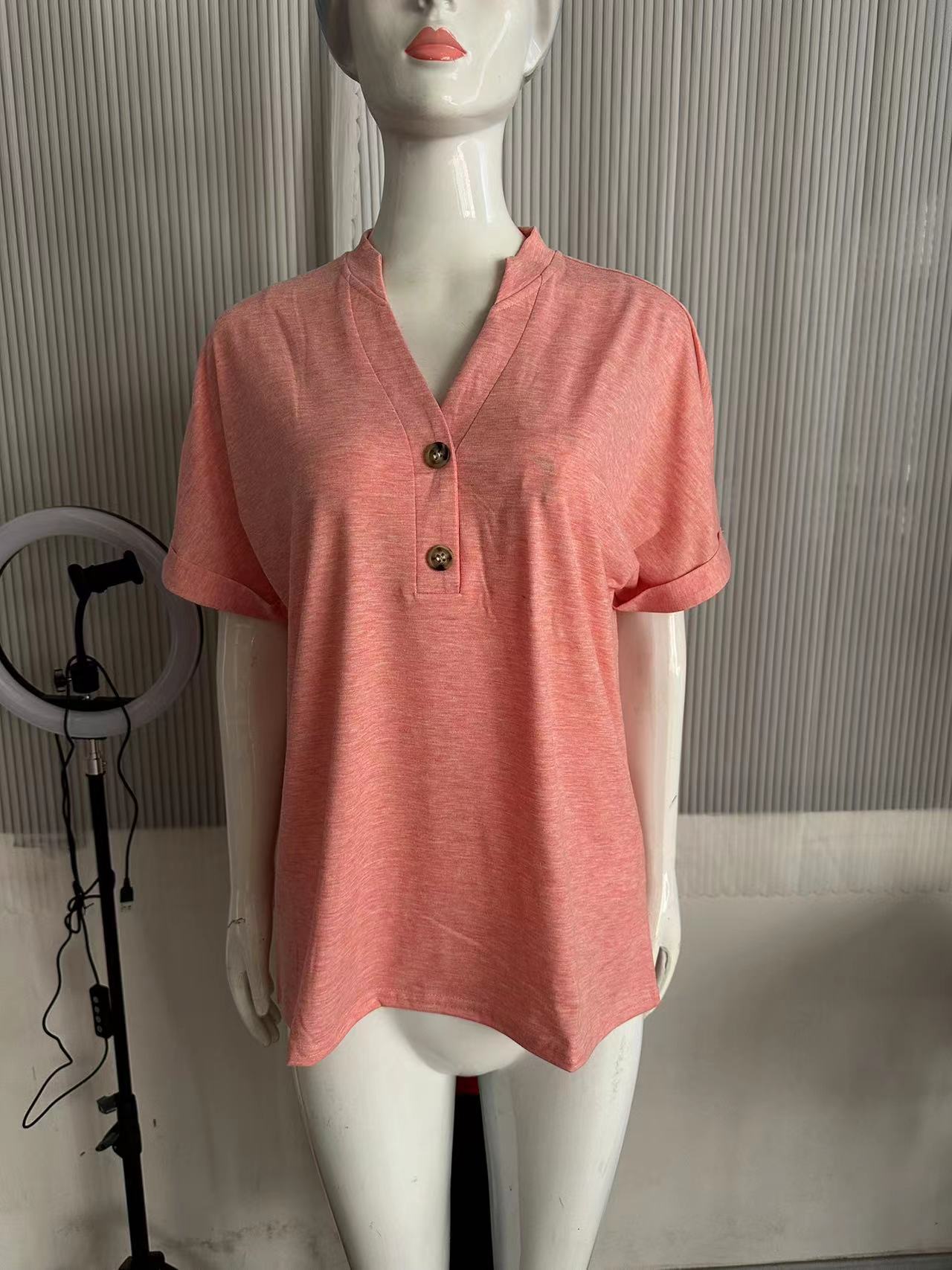 8色2023春夏外贸女装亚马逊 跨境新品欧美上衣纯色扭扣时尚短袖