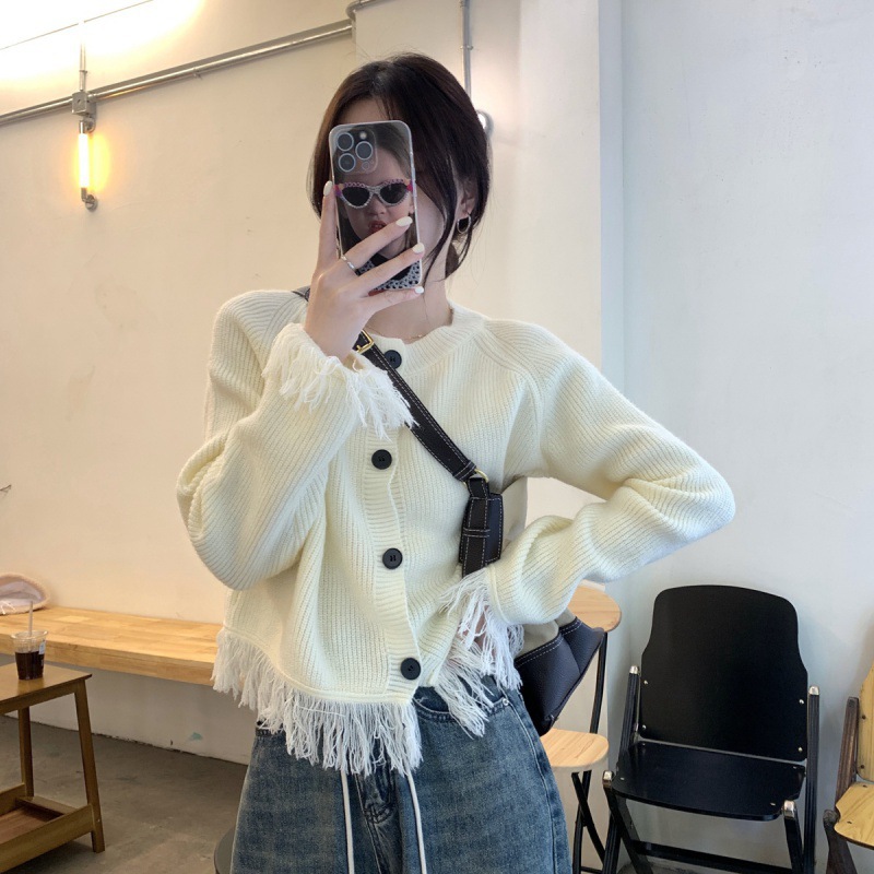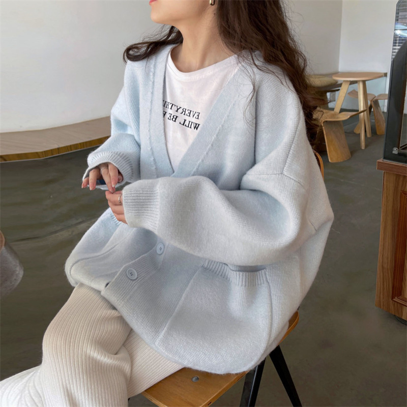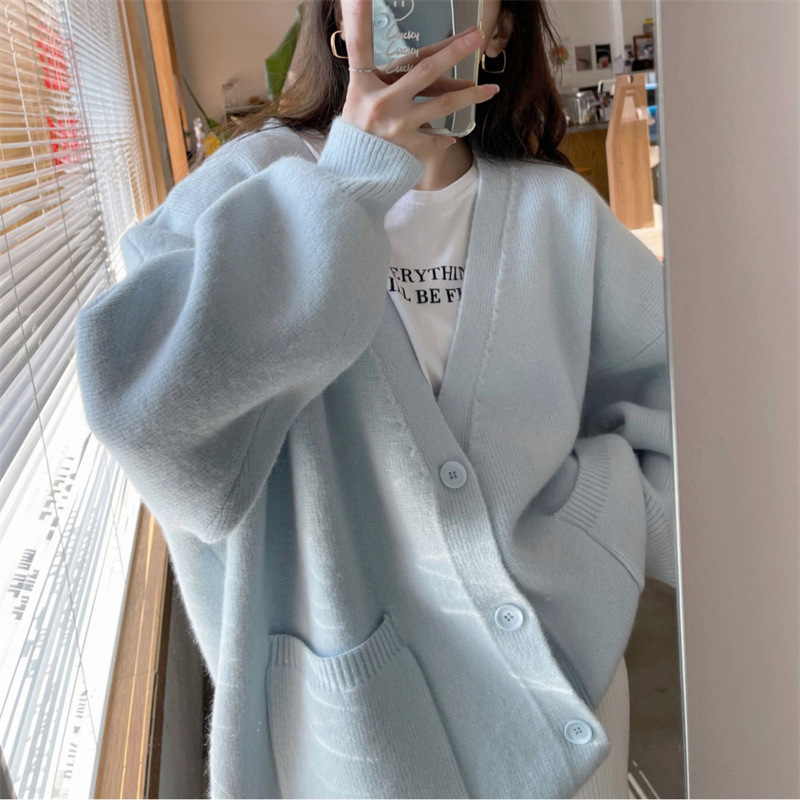 春秋韩版糖果色减龄软糯针织开衫女2023新款时尚慵懒风奶系针织衫