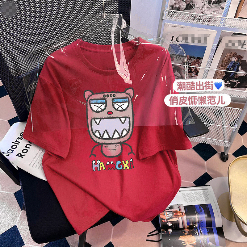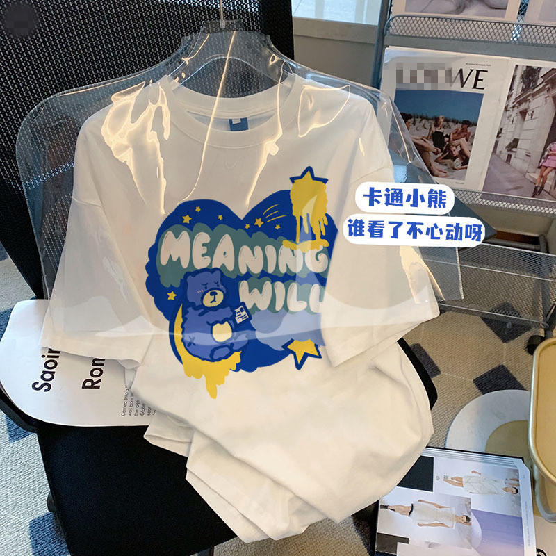 纯棉短袖t恤女上衣2023夏季新款个性百搭女生休闲体恤衫ins潮批发