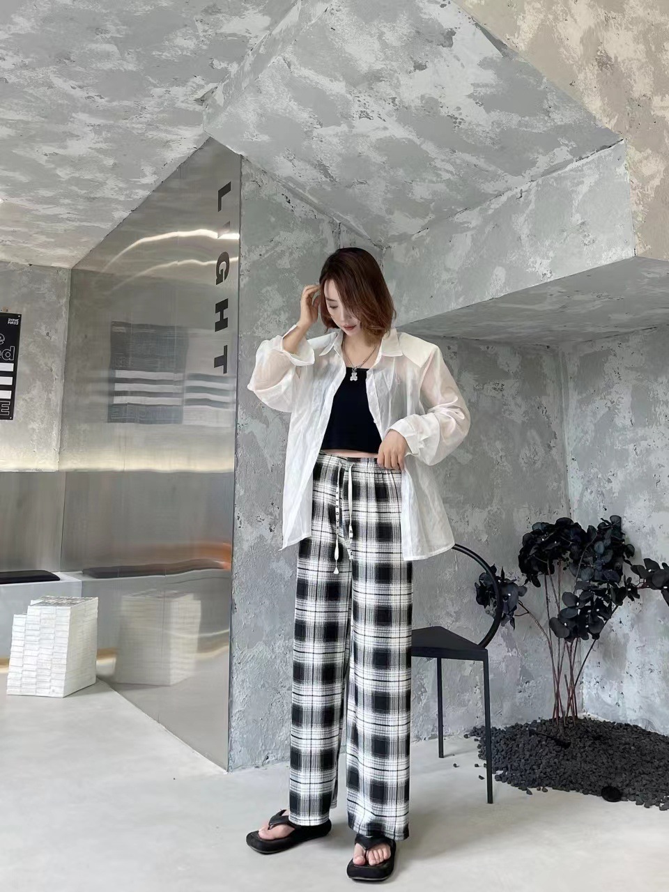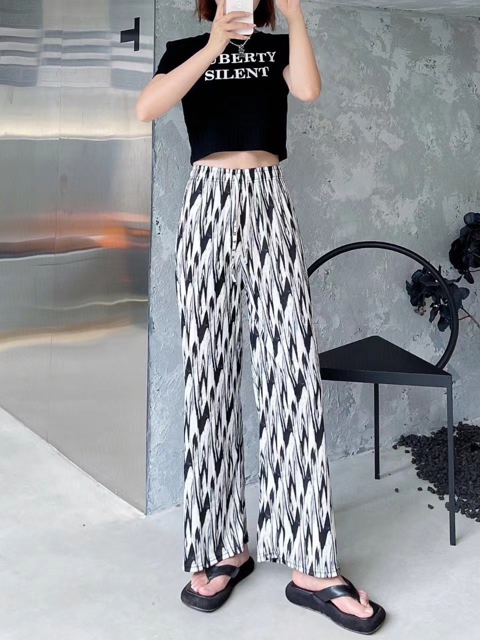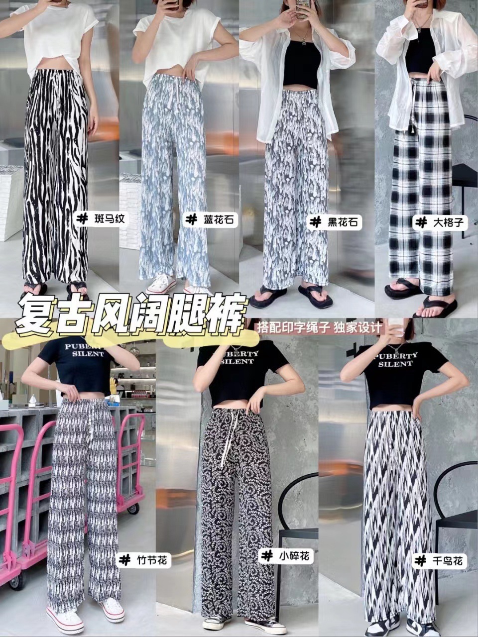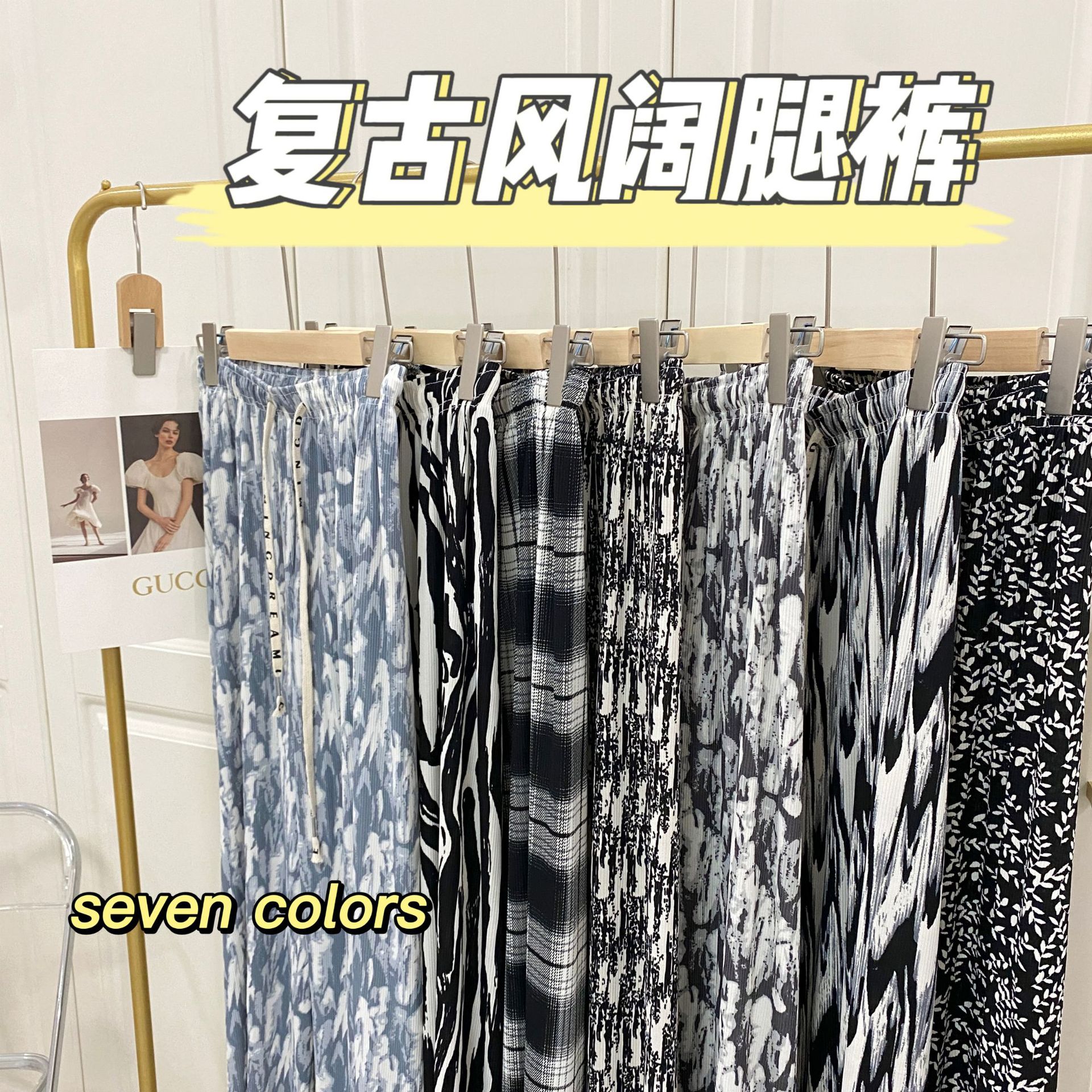 复古风阔腿裤女2023春夏秋季新时髦百搭直筒时尚减龄条纹休闲裤女