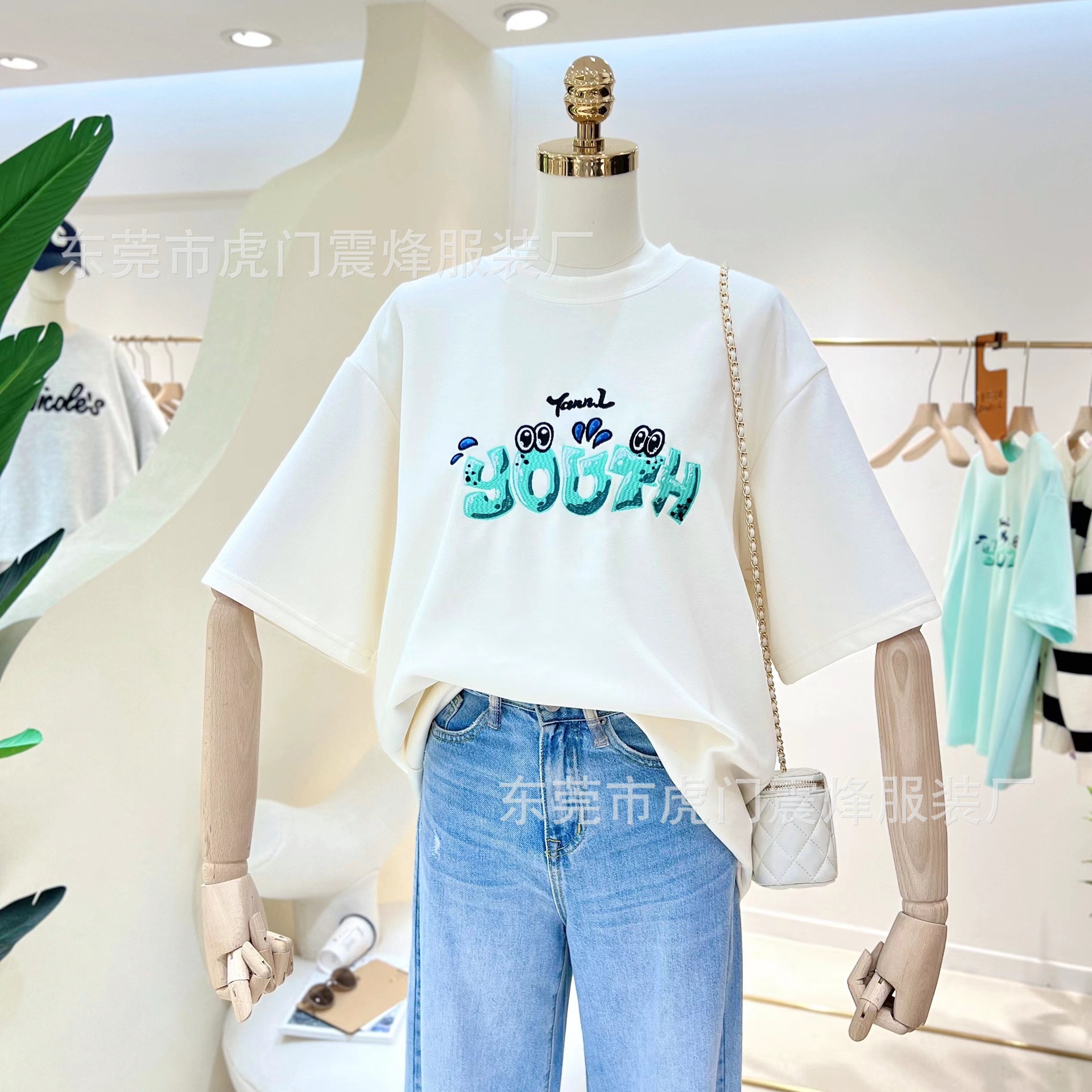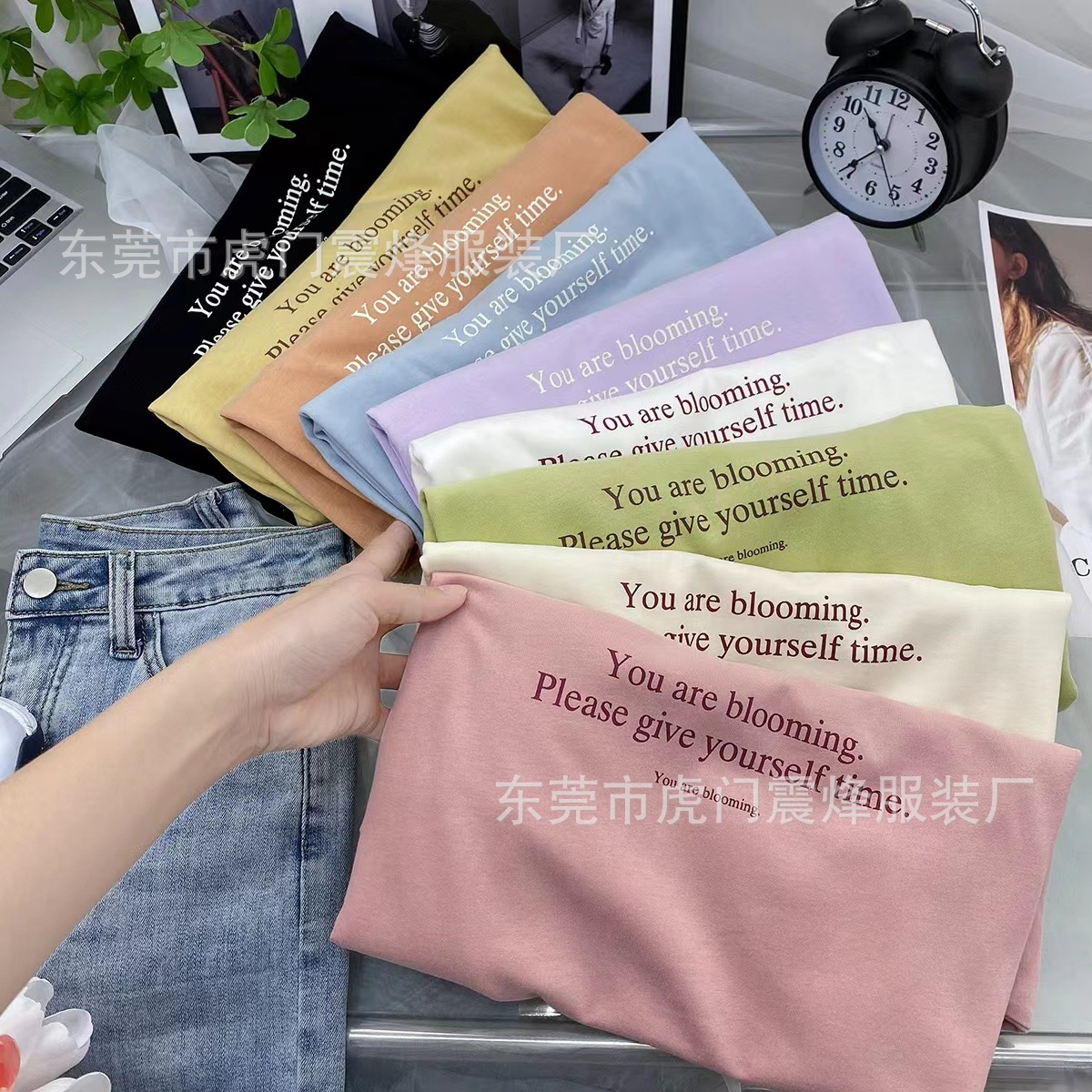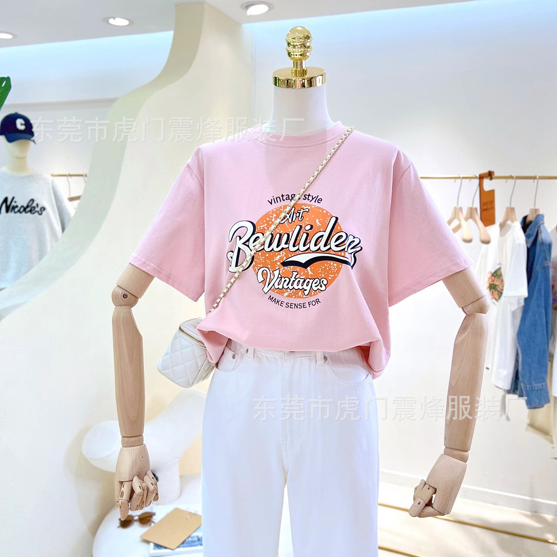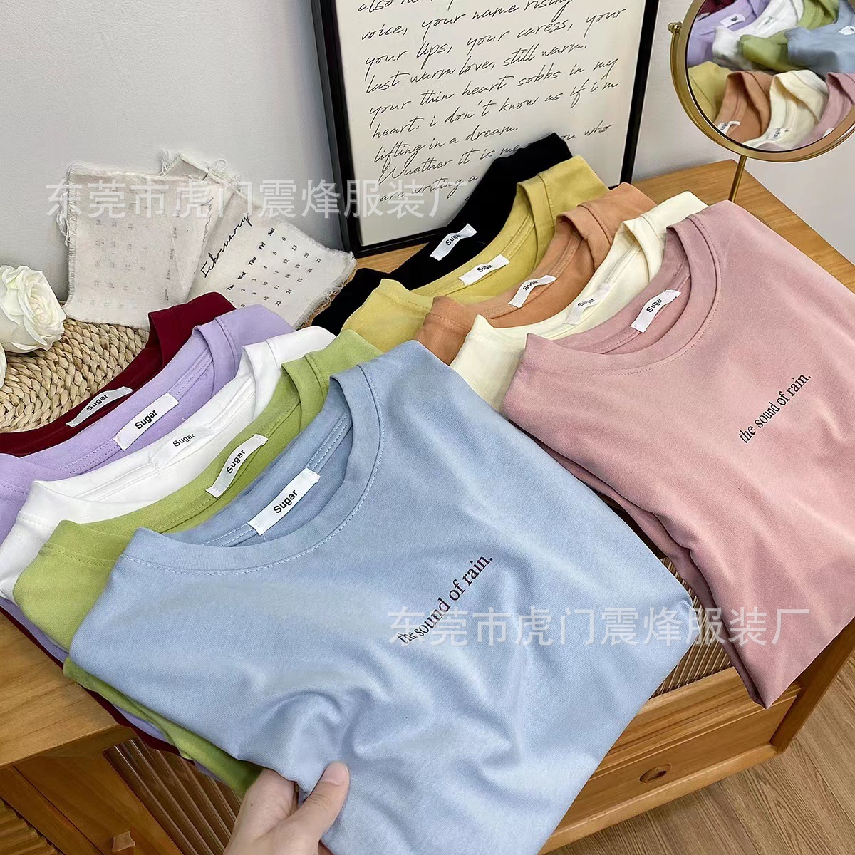2023夏季新款韩版女装短袖t恤圆领简约休闲女装T恤地摊批发