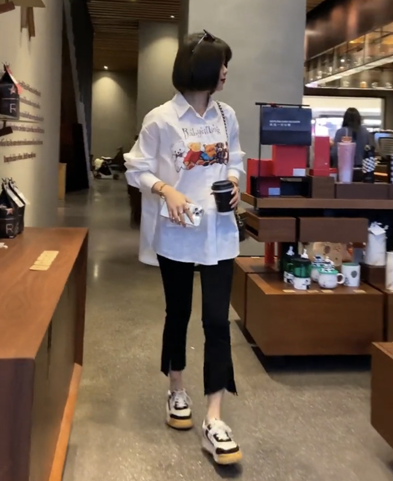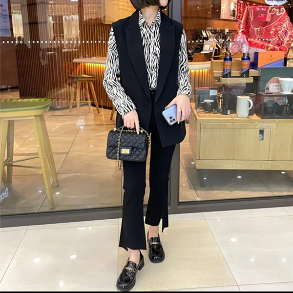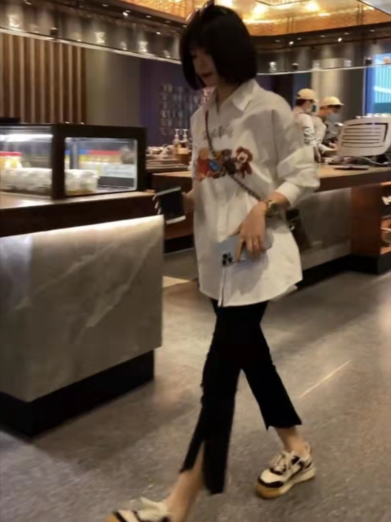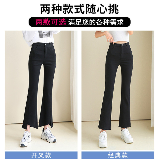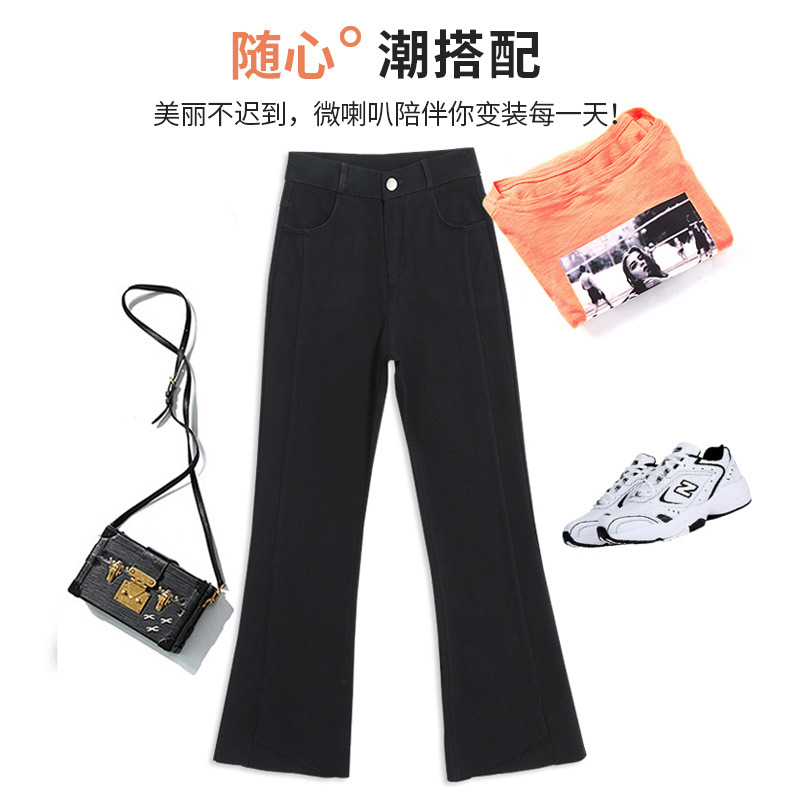 开叉喇叭裤女九分高腰显瘦2023春秋新款大码显瘦宽松黑色微喇裤子
