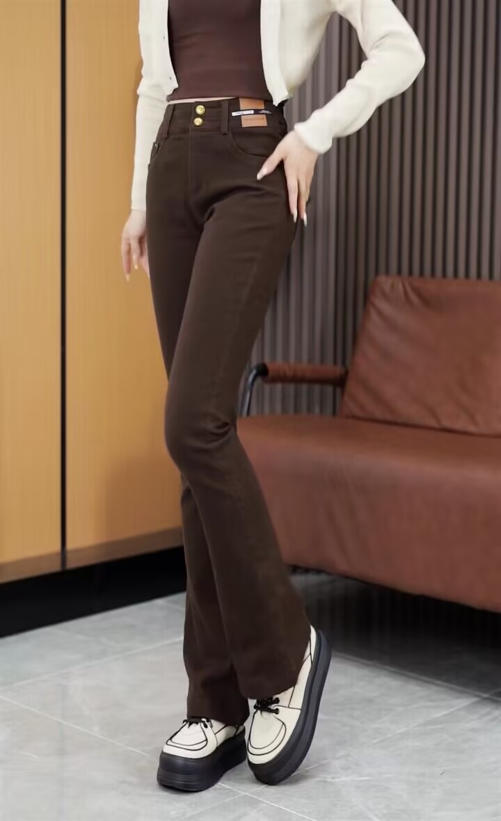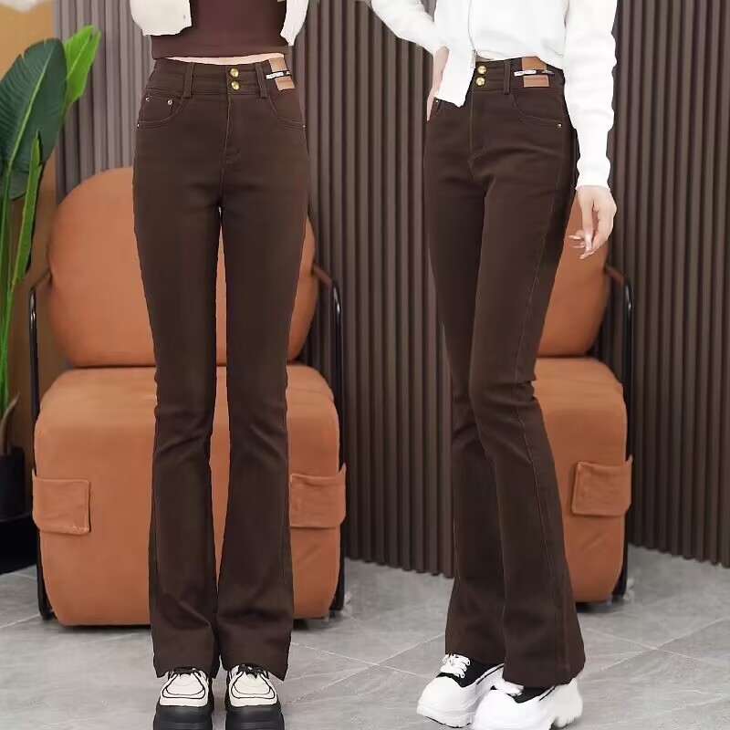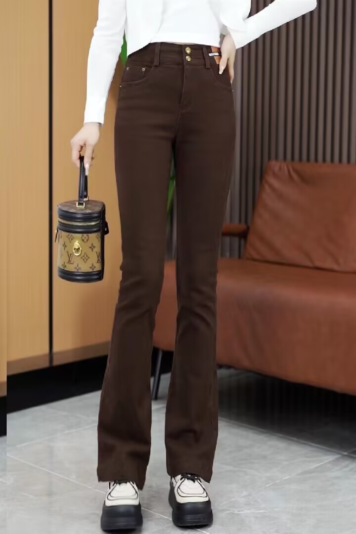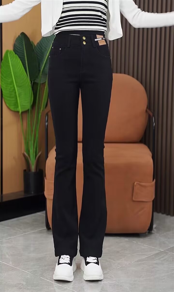 春季新款高腰微喇休闲裤女修身显瘦百搭加厚喇叭长裤休闲裤