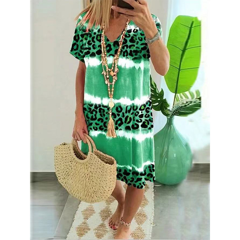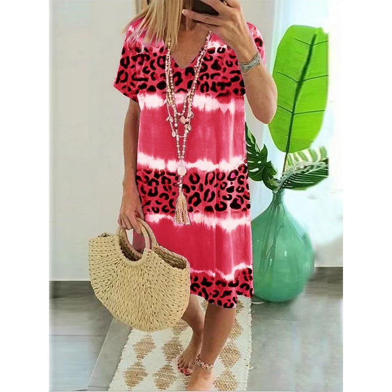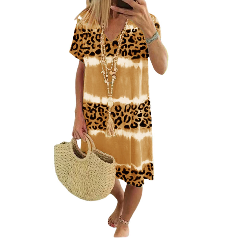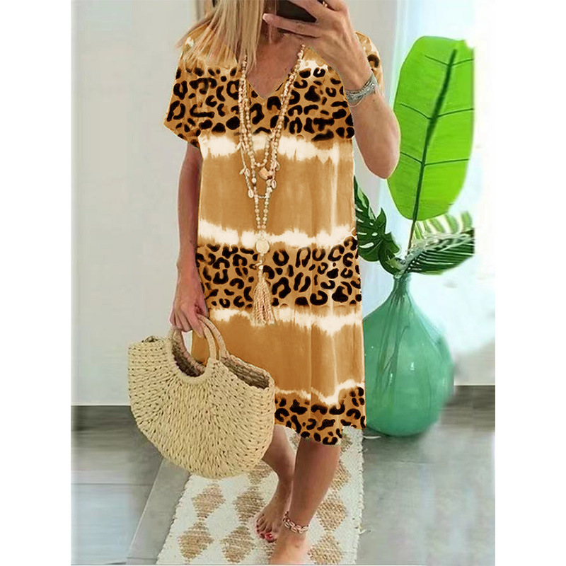 2023夏季新款wish亚马逊女装连衣裙女性感豹纹印花休闲中长裙女