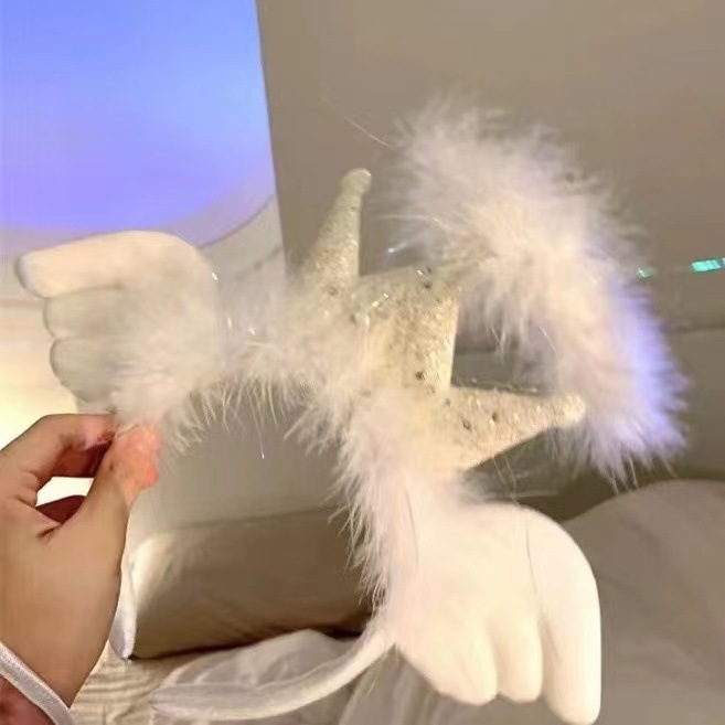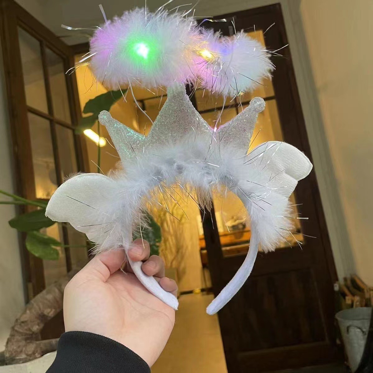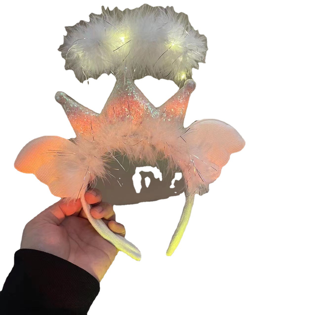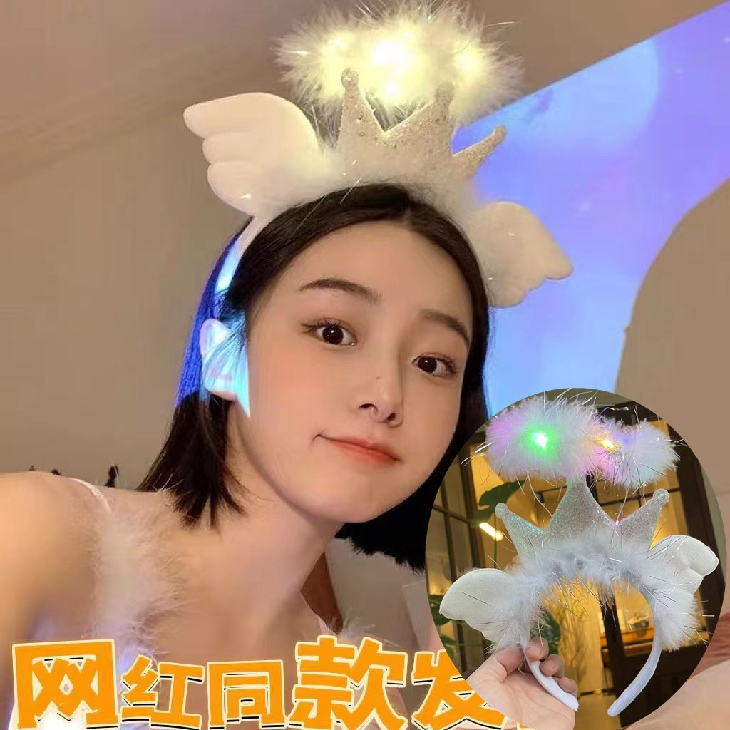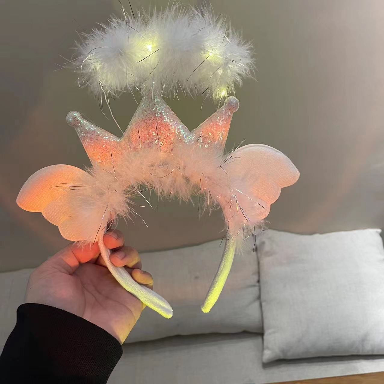 网红新款皇冠天使翅膀羽毛发箍直播头饰表演道具发光头箍夜市地推
