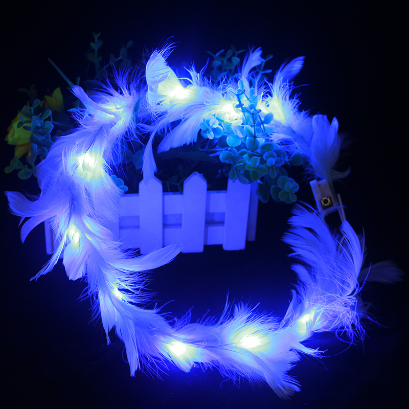 新款发光天使鹅毛花环羽毛闪光头饰网红夜市地推扫码小礼品批发