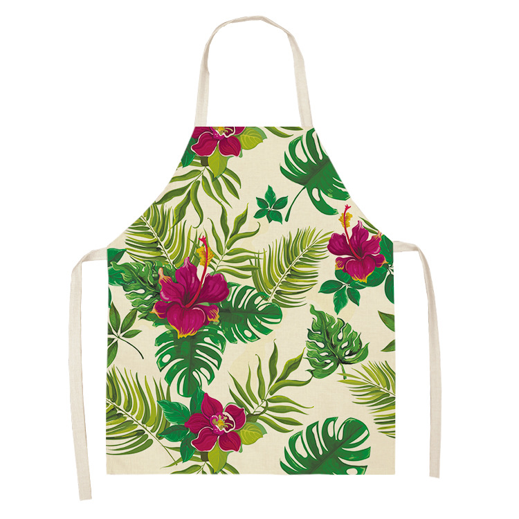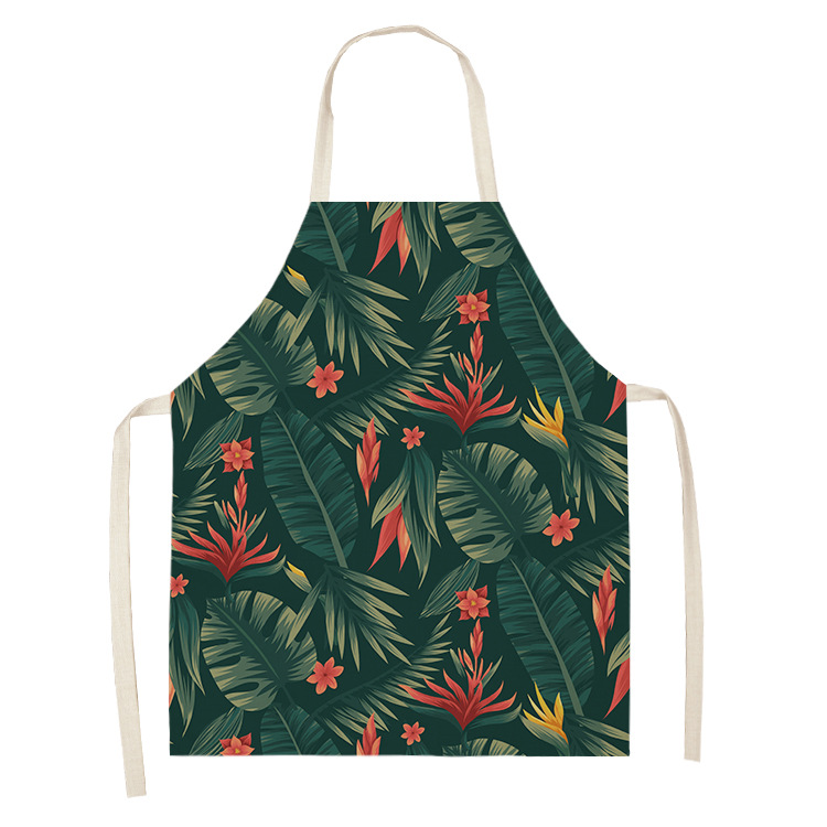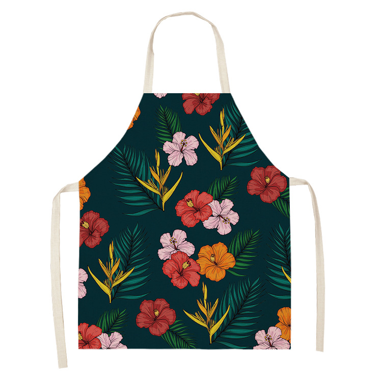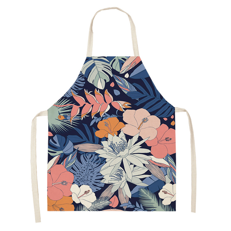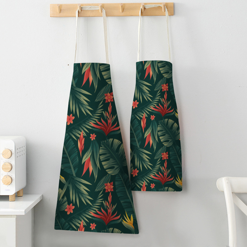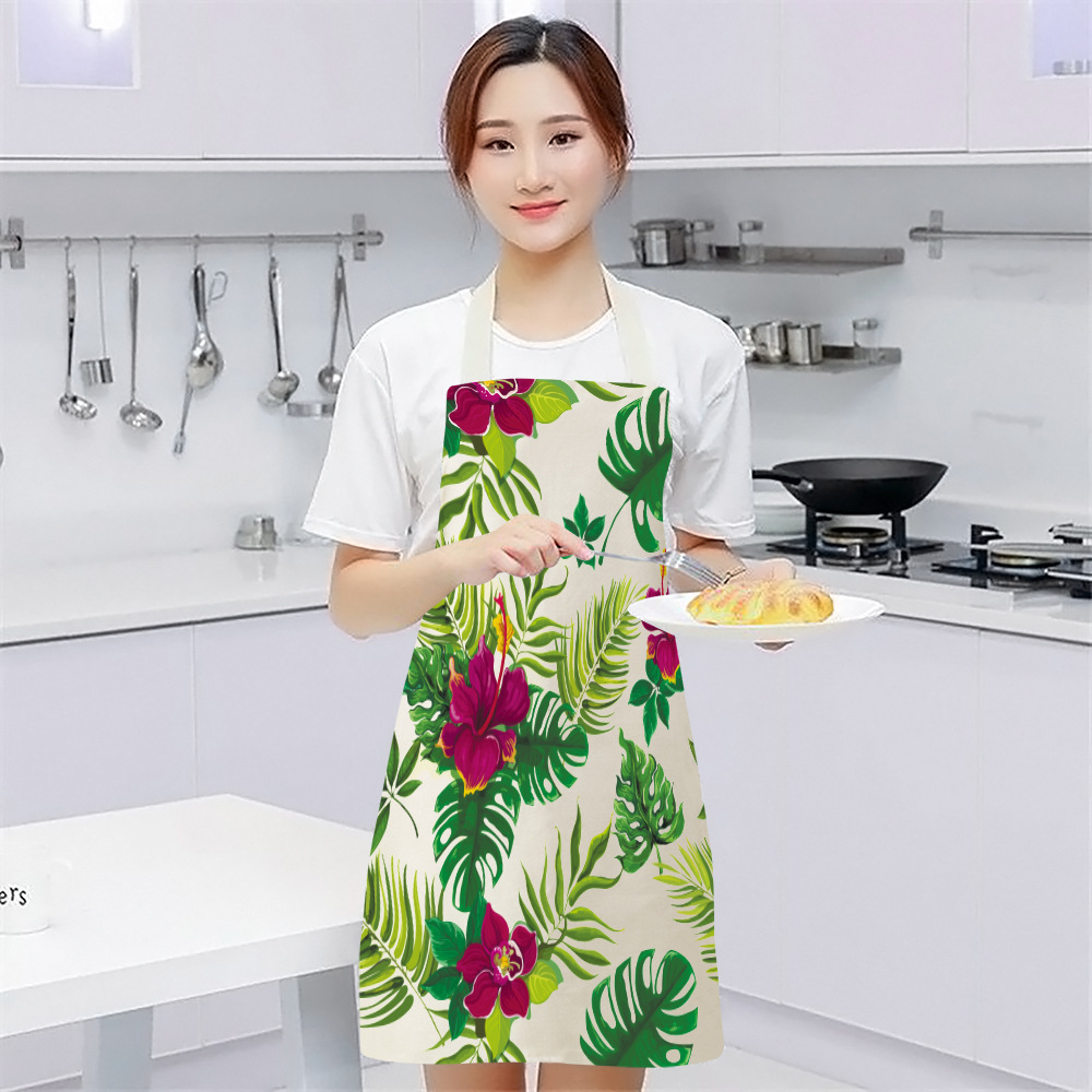简约数码印花花卉围裙做菜防污涤纶无袖围裙多款式工作服围脖