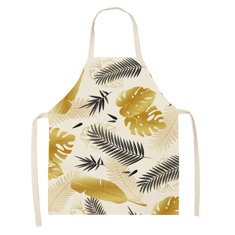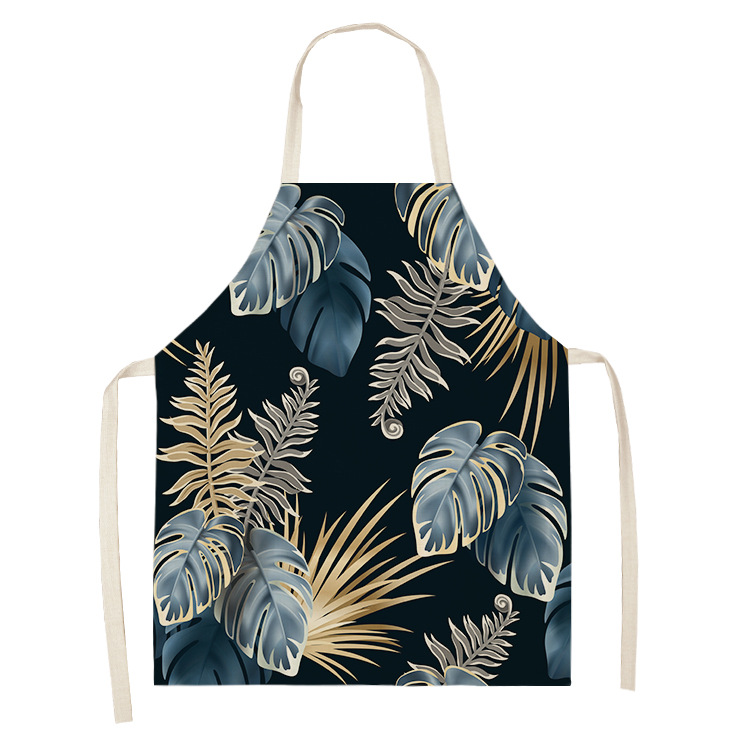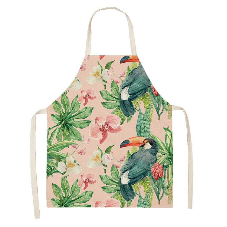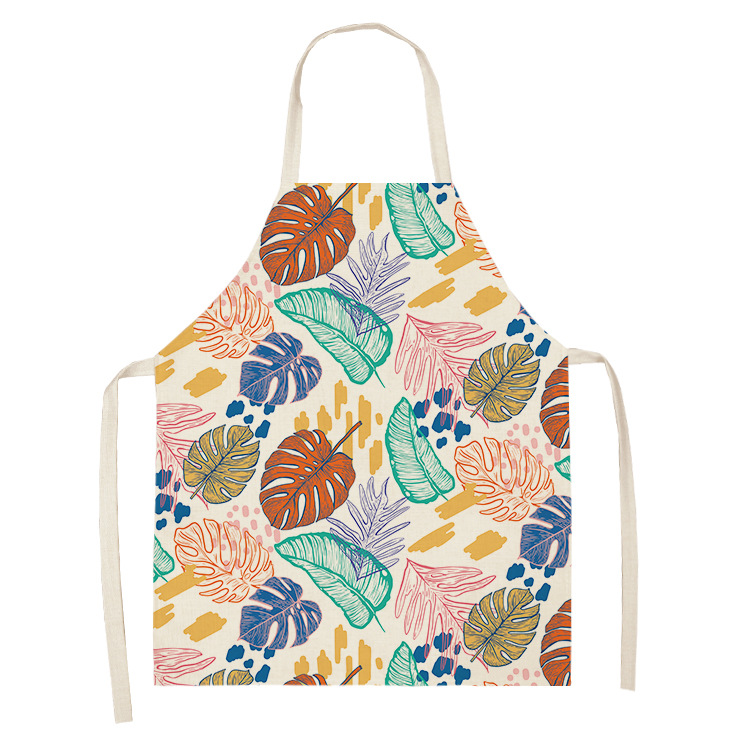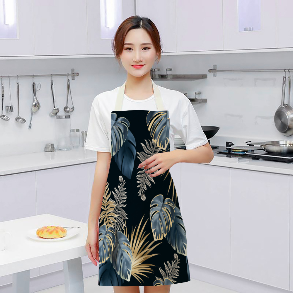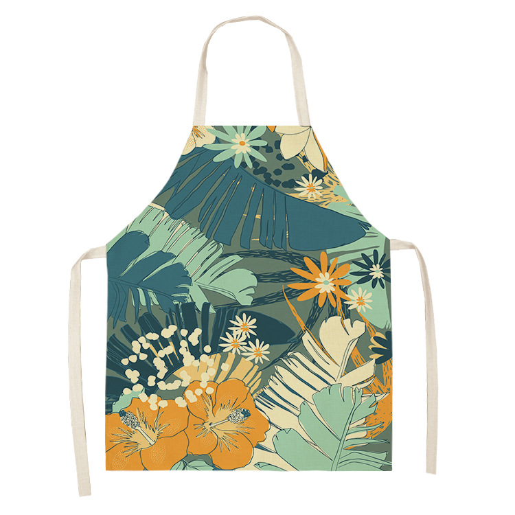 简约数码印花花卉围裙做菜防污涤纶无袖围裙多款式工作服围脖