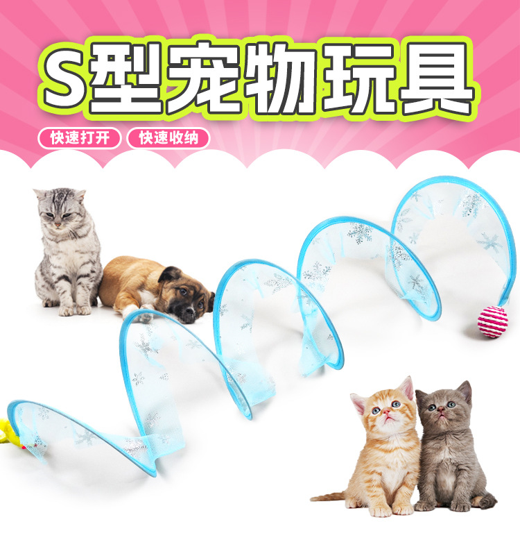 亚马逊跨境宠物用品S型可折叠猫隧道逗猫棒悬挂自嗨逗猫玩具