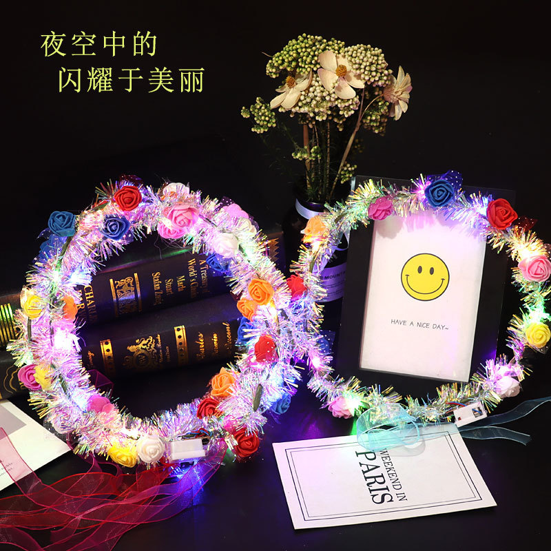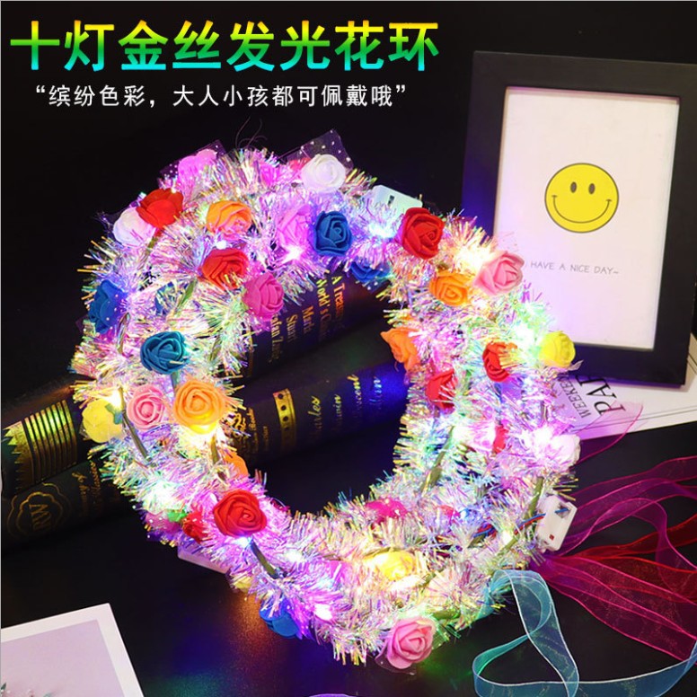 新款发光金丝花环十灯泡沫旅游景区扫码闪光头饰夜市地推玩具热卖