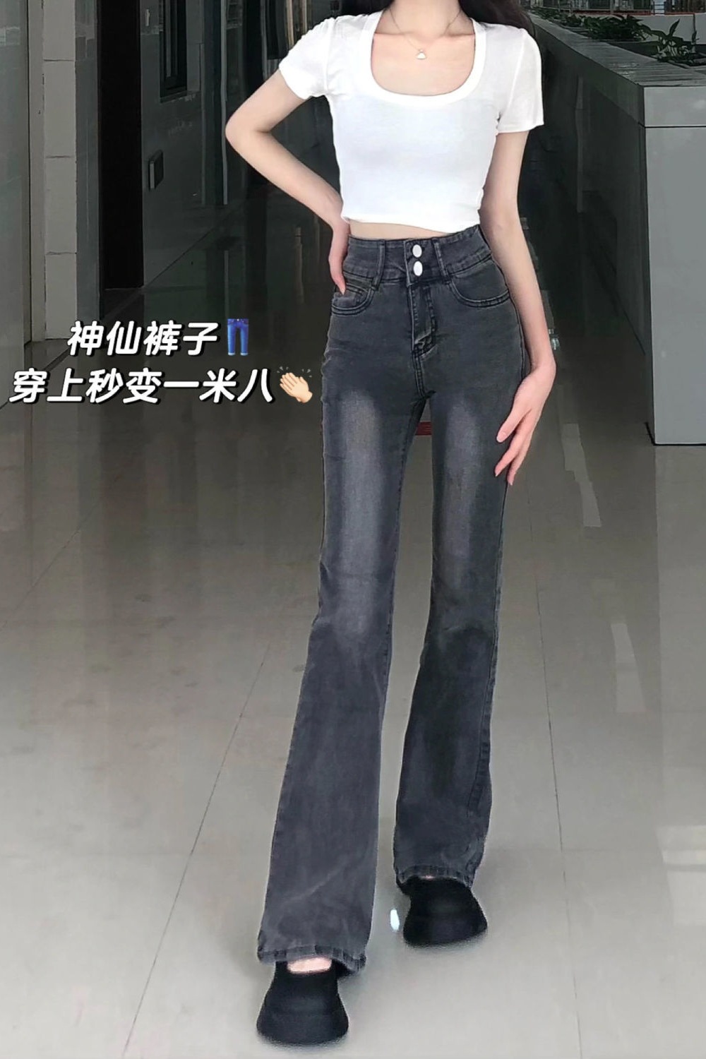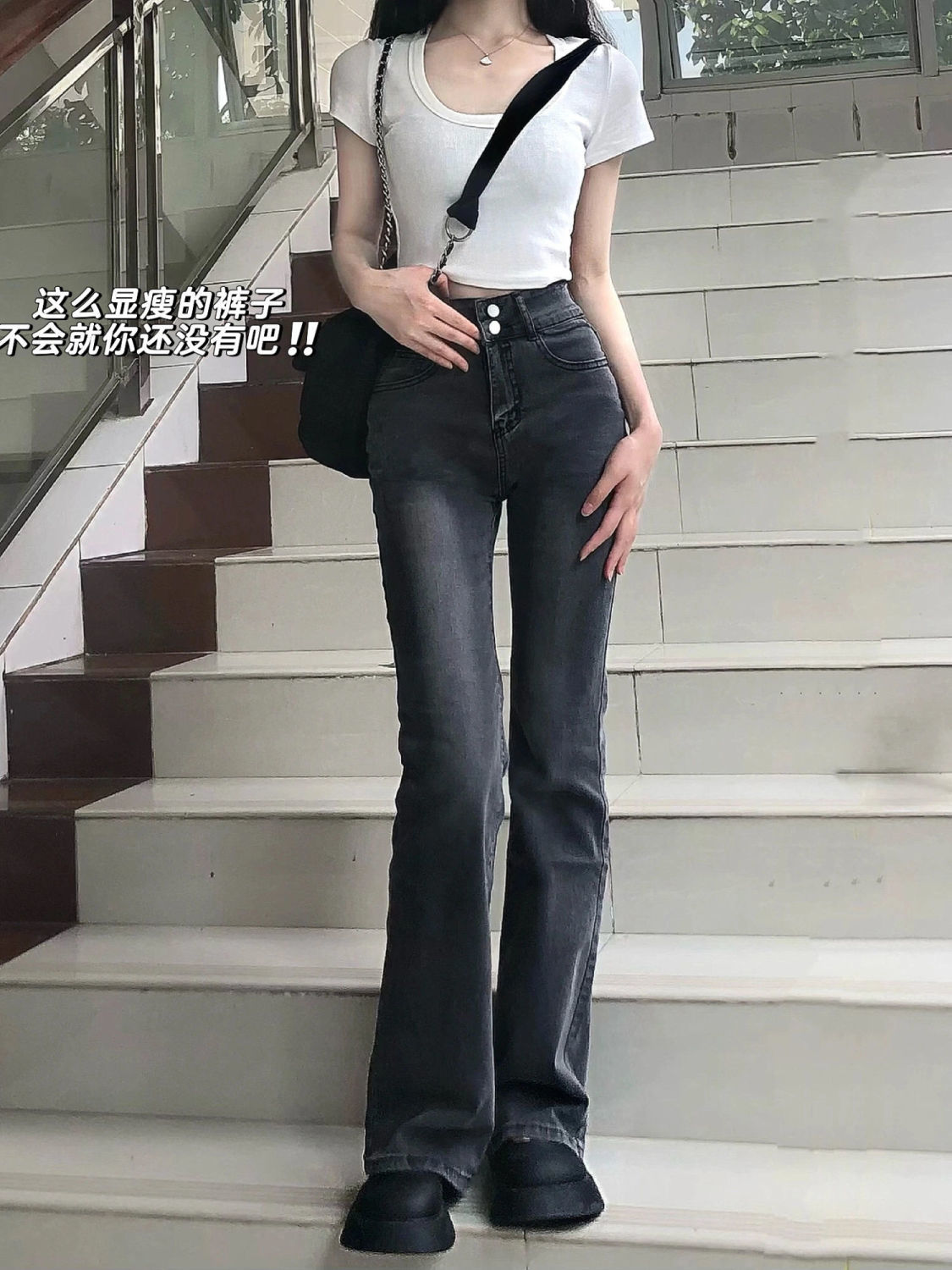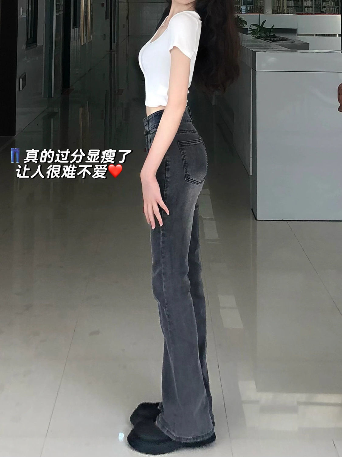 2025微喇叭牛仔裤女春秋新款高腰显瘦百搭黑灰小个子直筒阔腿裤子