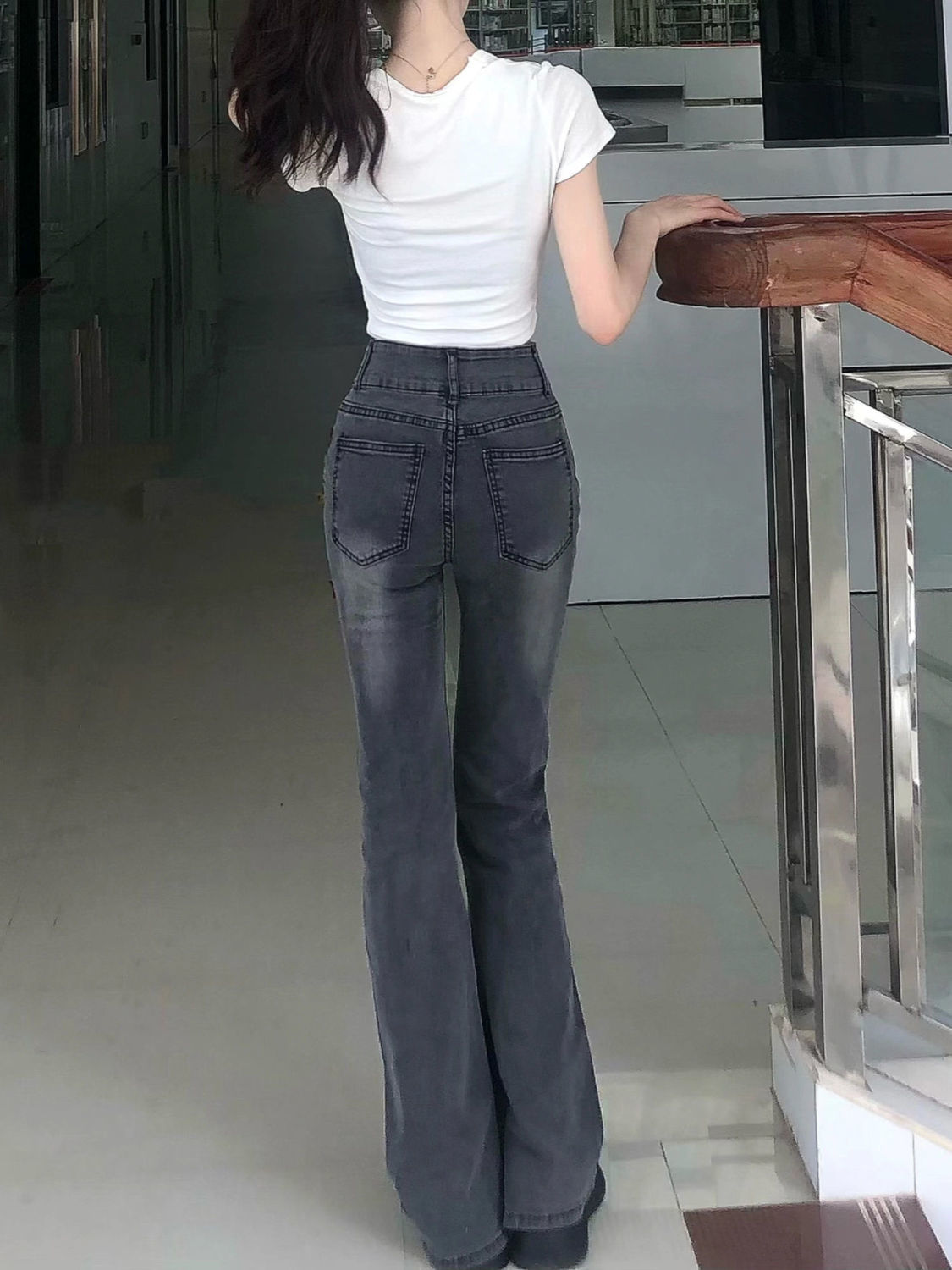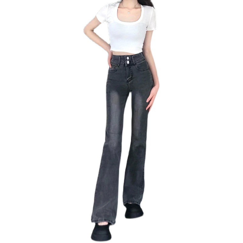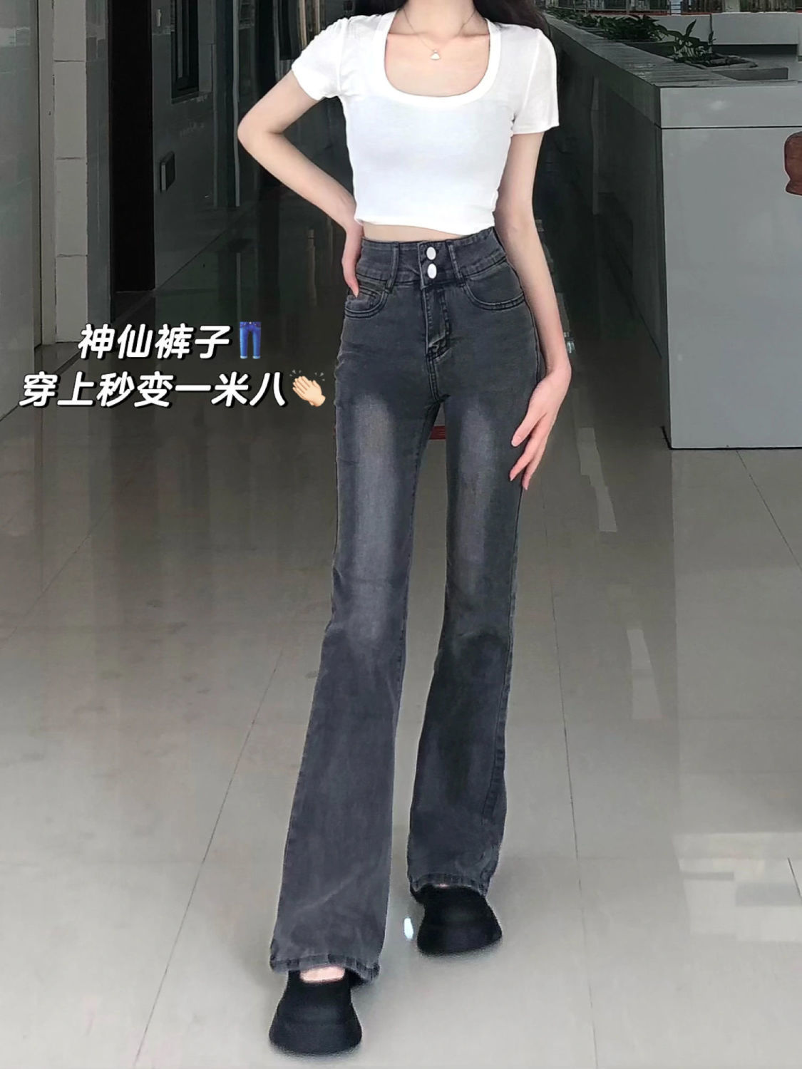2025微喇叭牛仔裤女春秋新款高腰显瘦百搭黑灰小个子直筒阔腿裤子