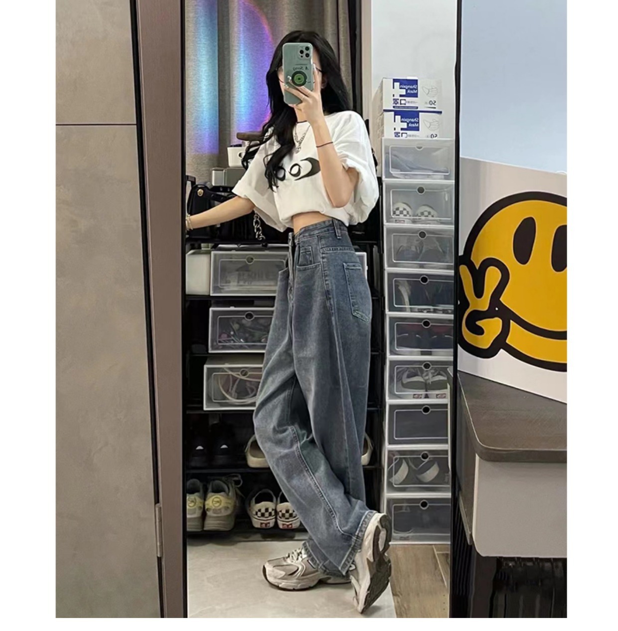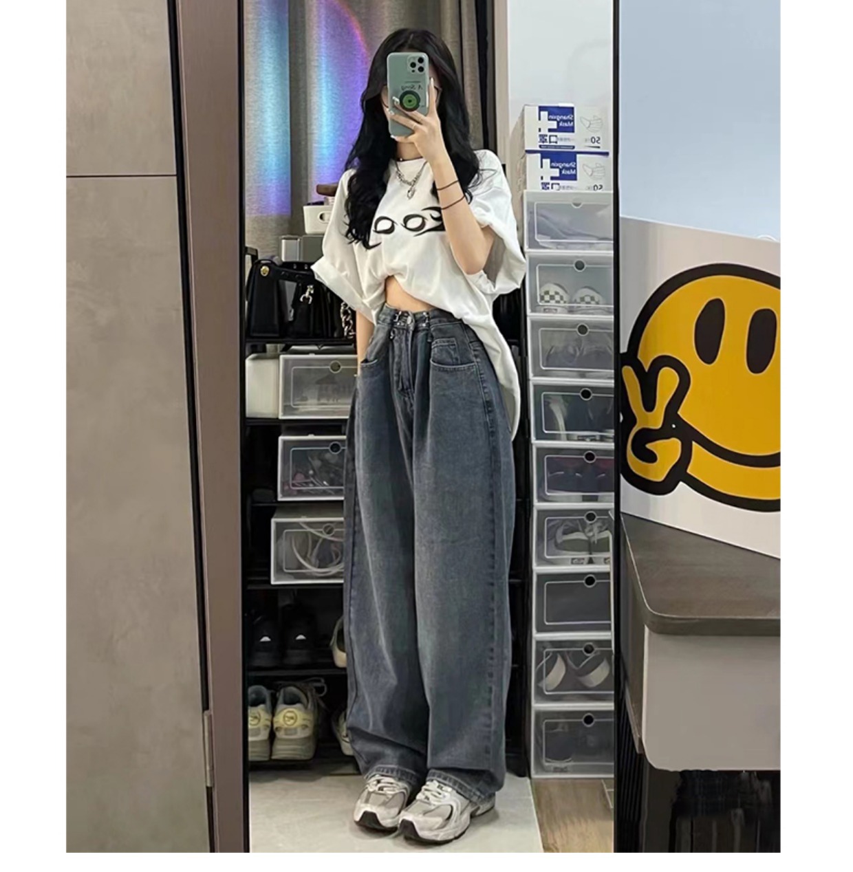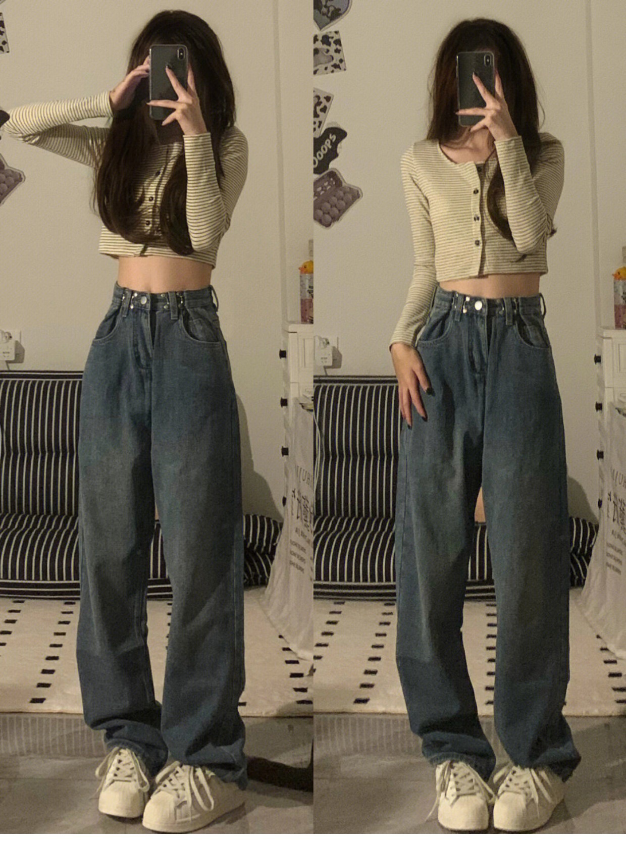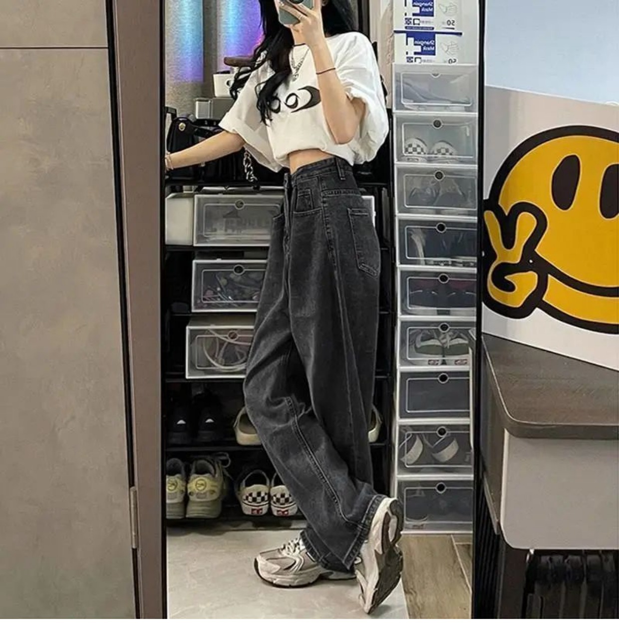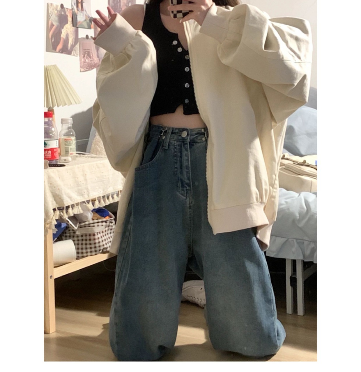 复古辣妹高腰牛仔裤女春秋美式高街设计感宽松垂感直筒阔腿拖地裤