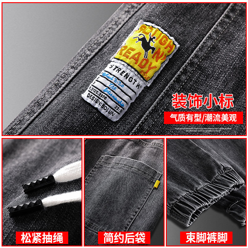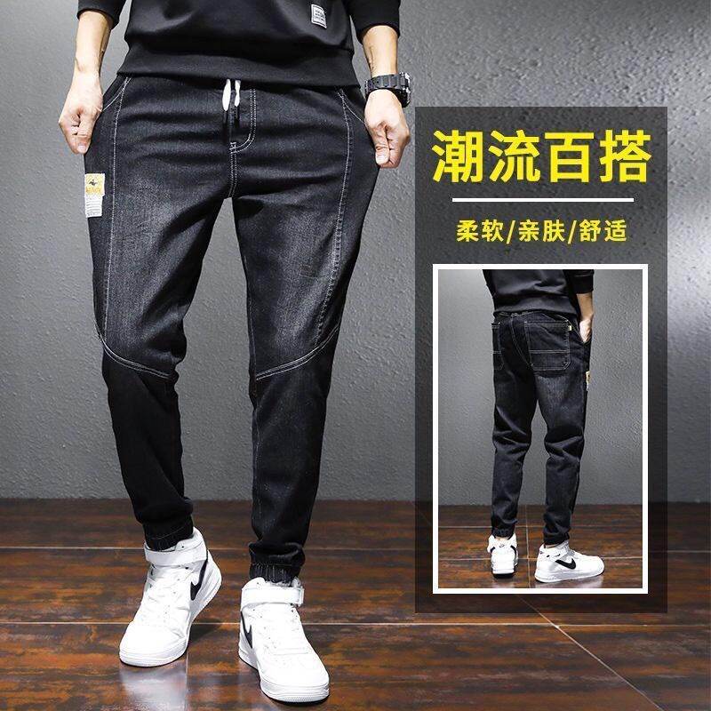 男士新款时尚休闲裤子青年牛仔裤男款韩版潮流工装束脚哈伦裤