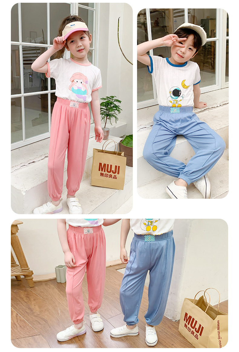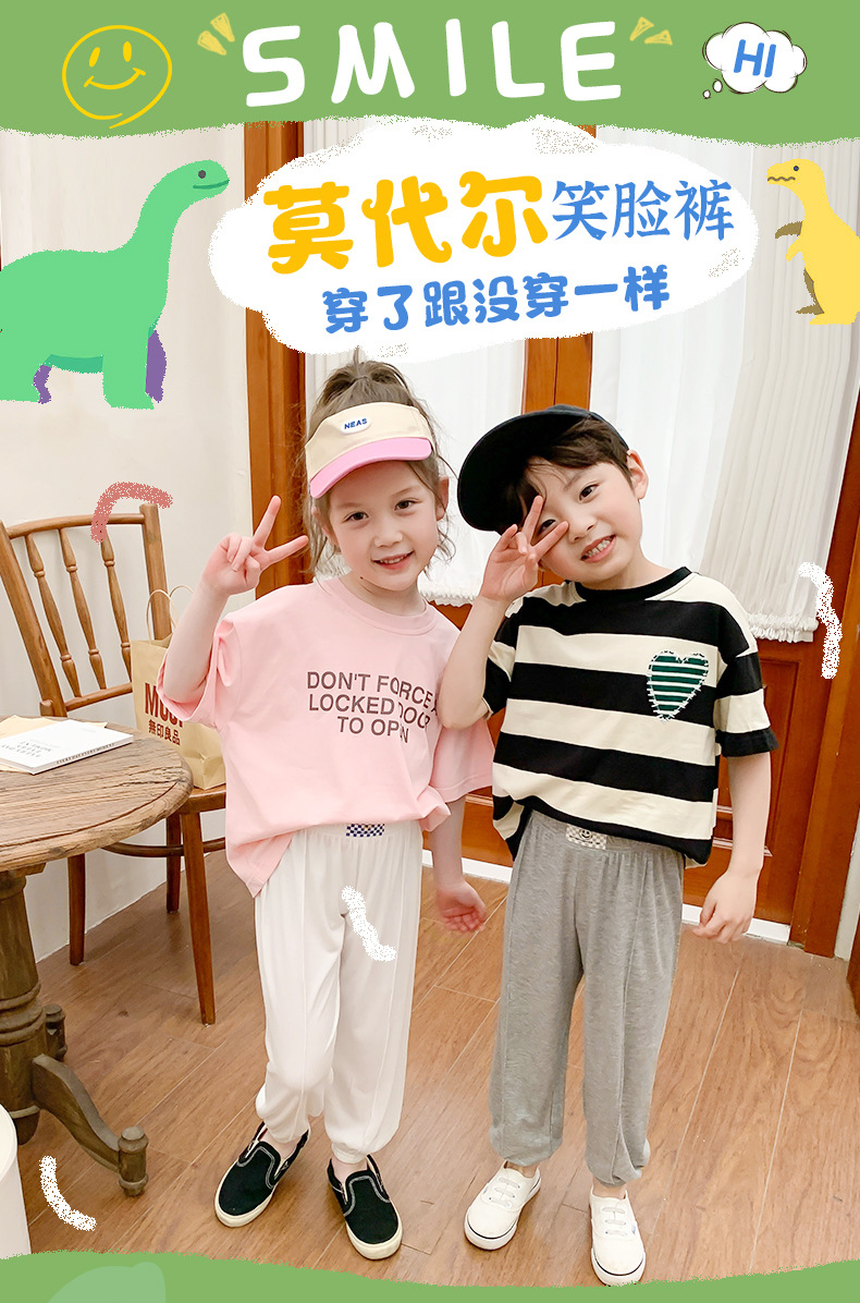 韩国春夏儿童莫代尔笑脸休闲长裤中大童纯色裸感防蚊裤卫裤运动裤