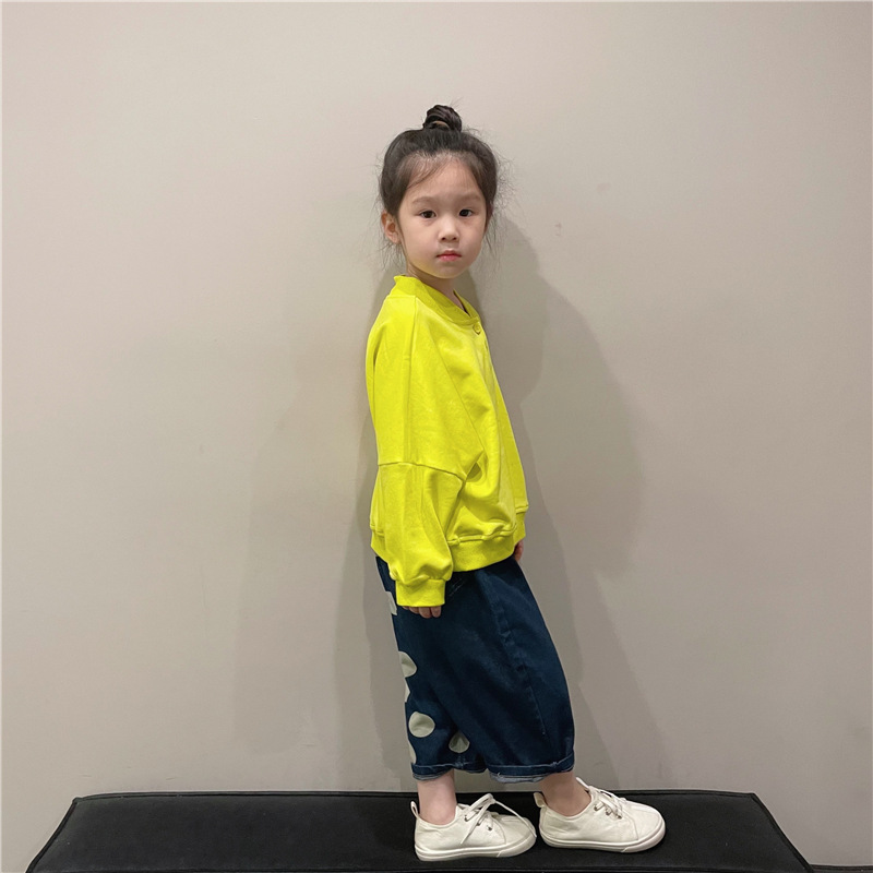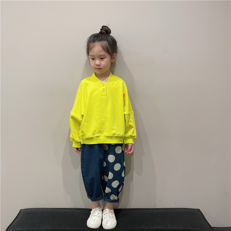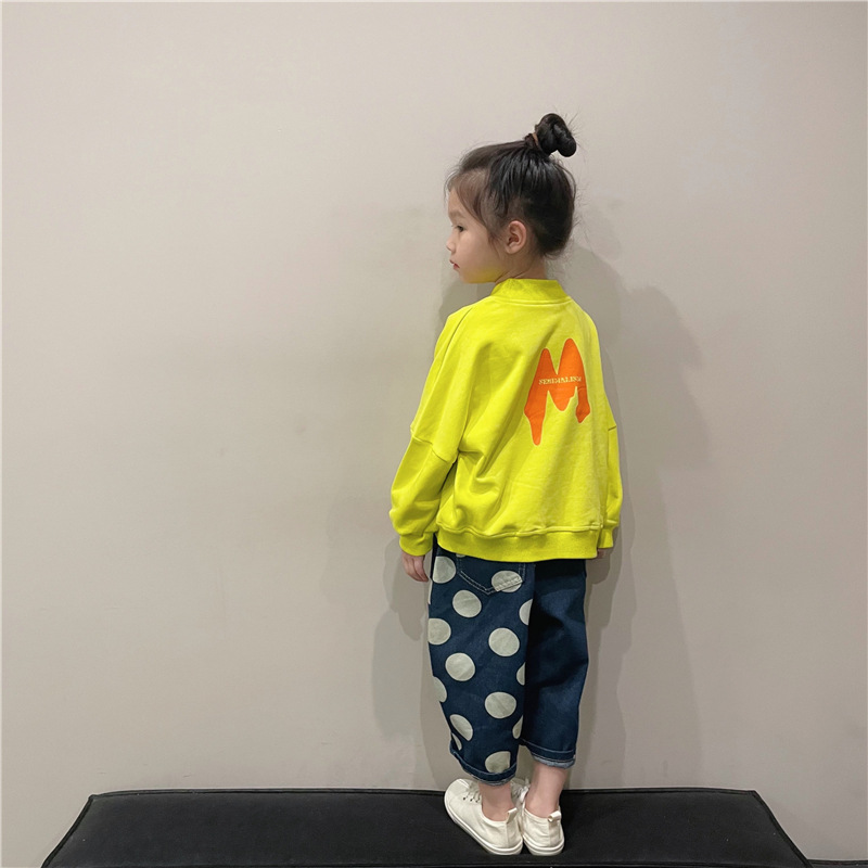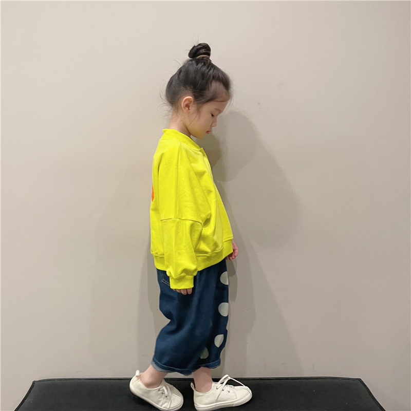 童装儿童裤子2023春装新款韩版波点牛仔裤洋气宝宝拼色休闲裤K315
