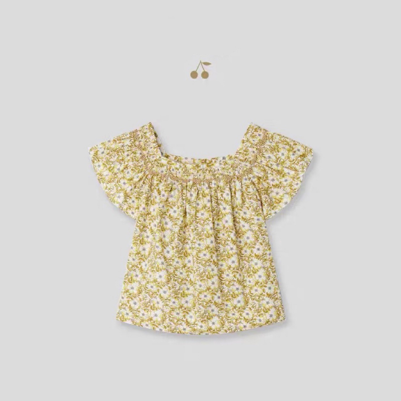 23年春夏新款bp同款女童黄色印花碎花纯棉上衣连衣裙半身裙衬衫