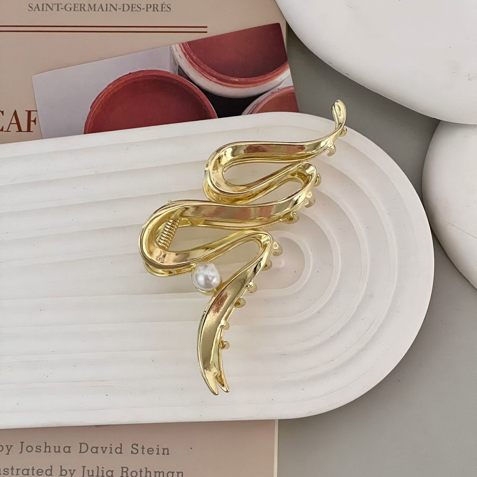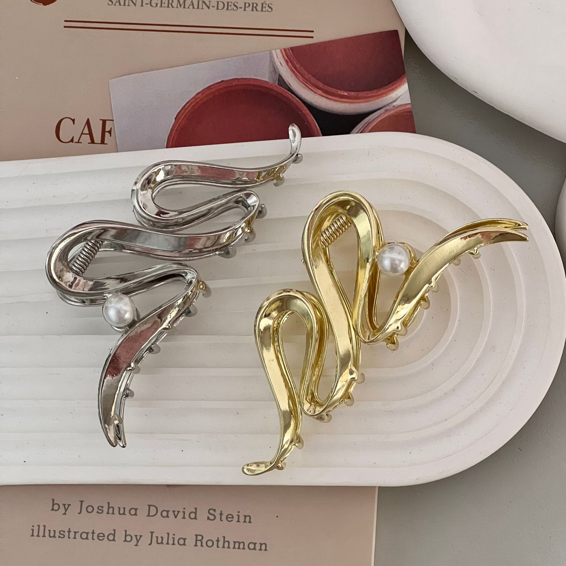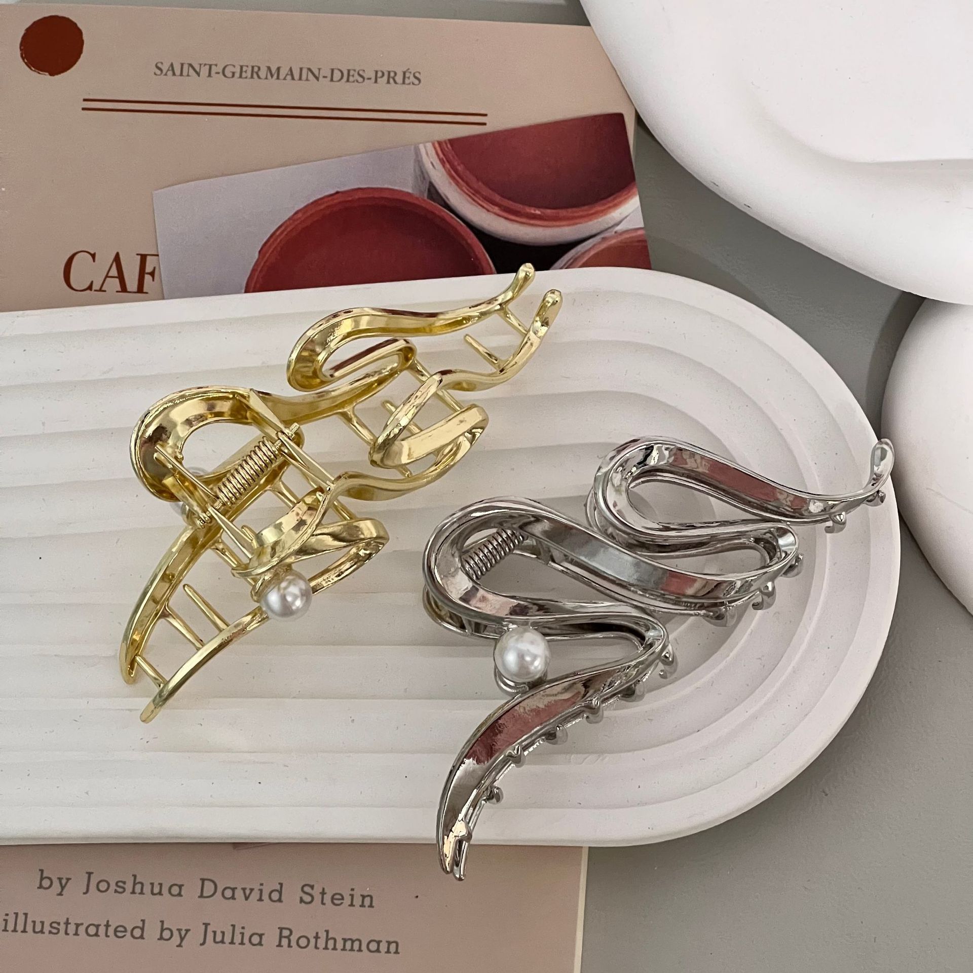 小众线条设计感金属珍珠抓夹女潮后脑勺盘发抓夹冷淡风鲨鱼夹发饰