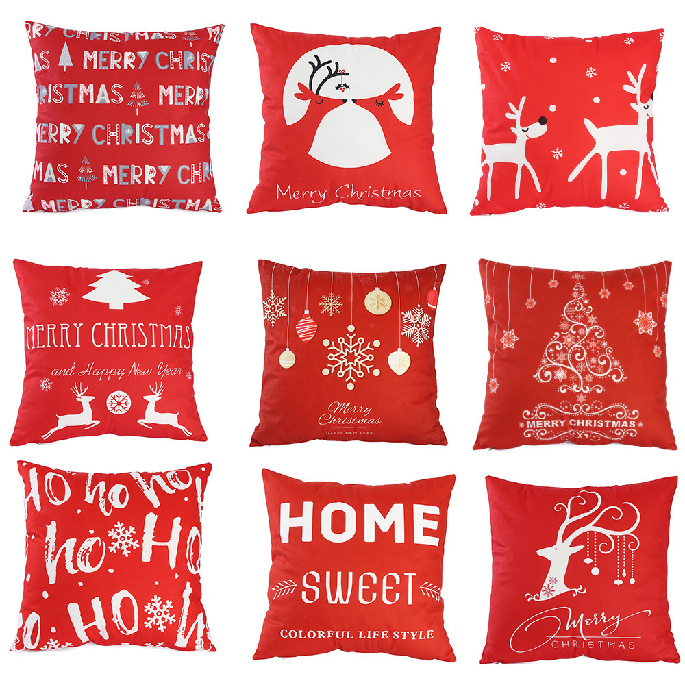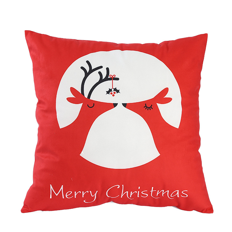 圣诞节新款枕套棉麻印花红色字母麋鹿款枕套简约风格枕套厂家批发