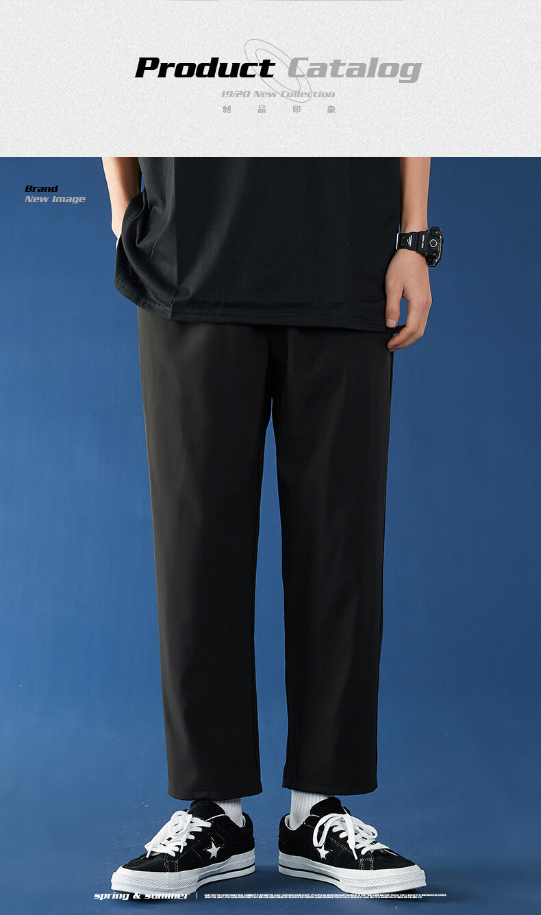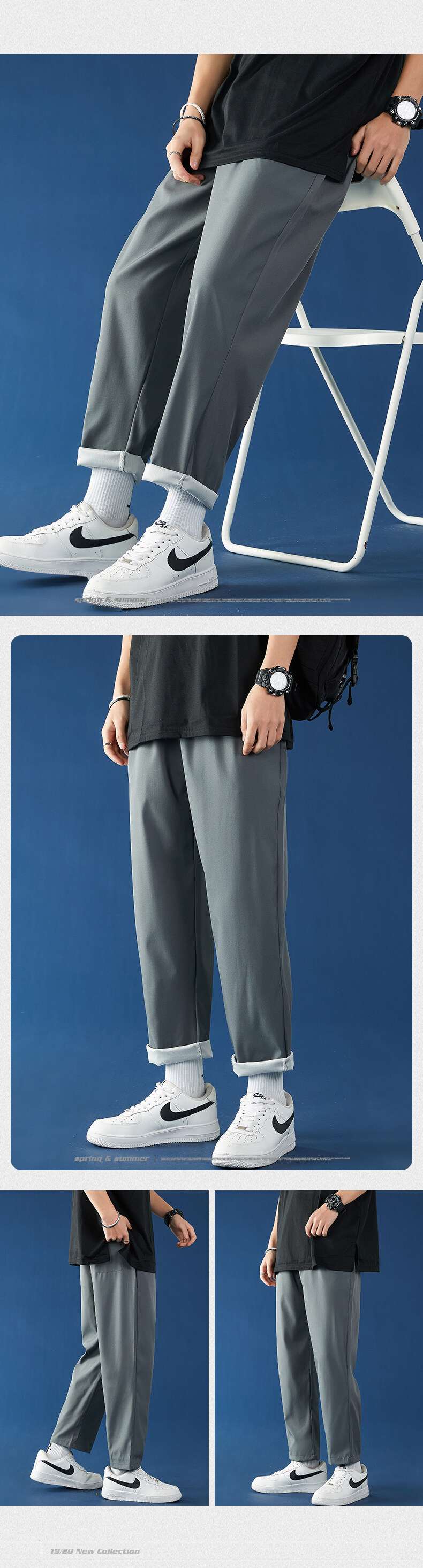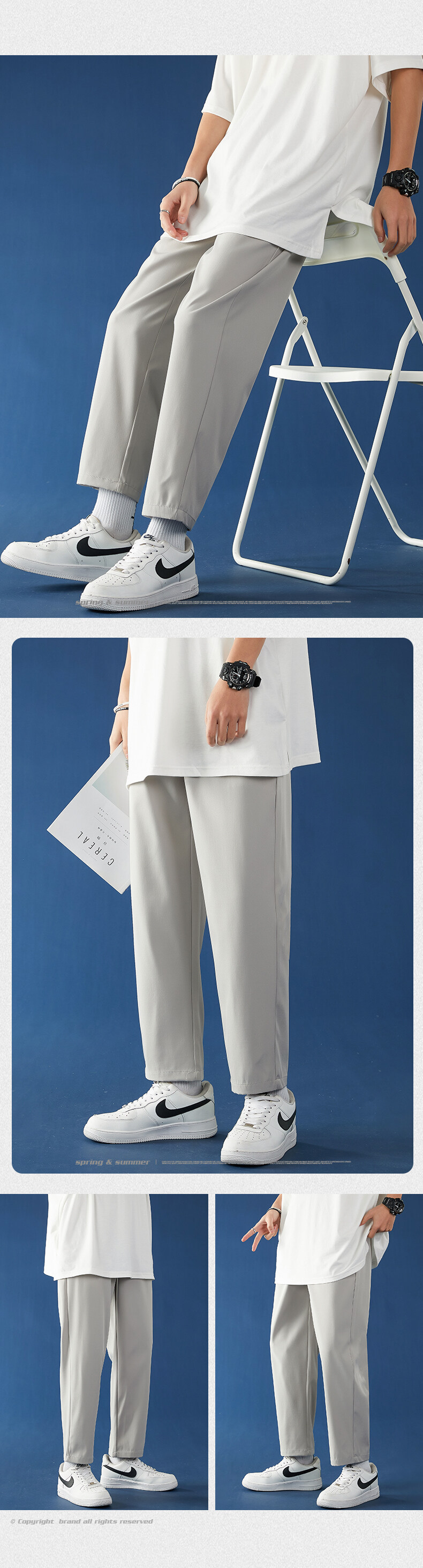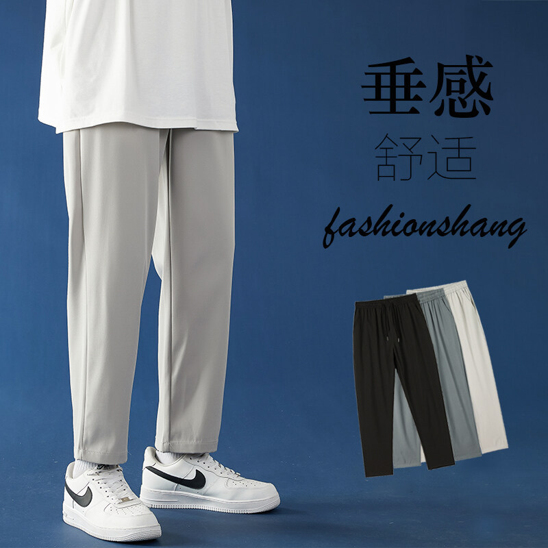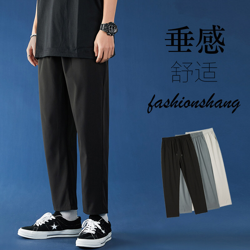 冰丝裤包边小西裤男垂感九分裤子韩版潮流修身纯色休闲裤男士直筒