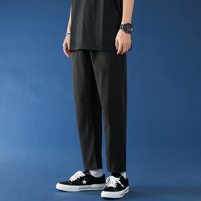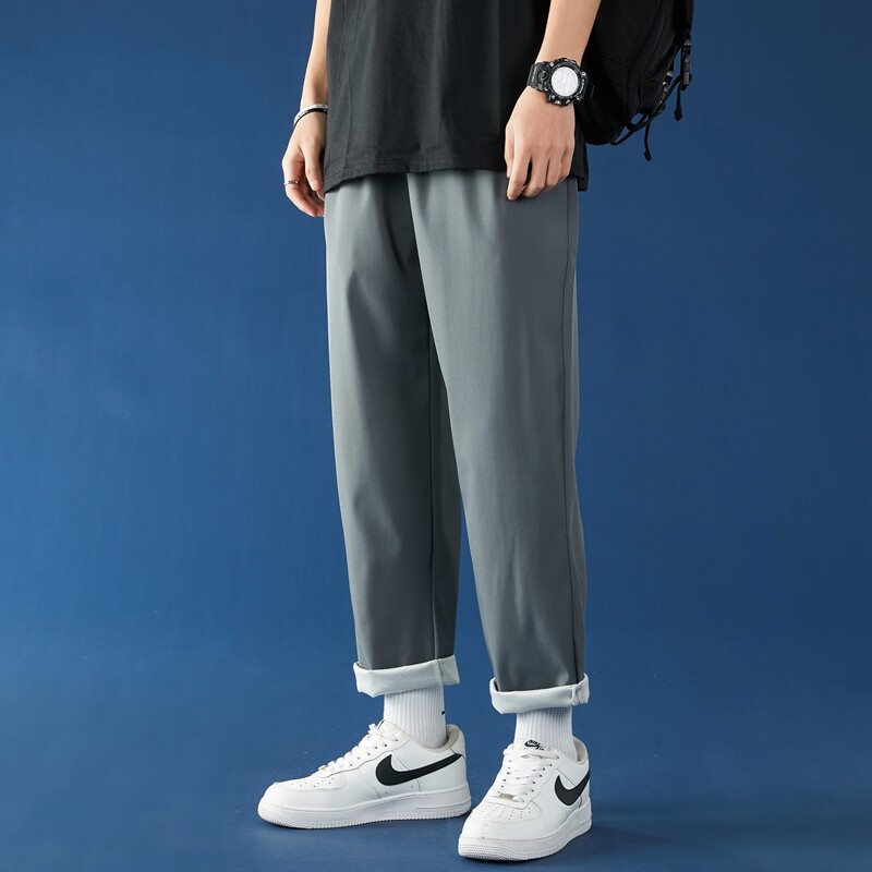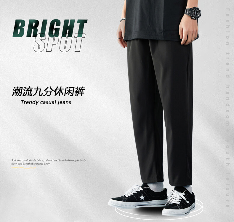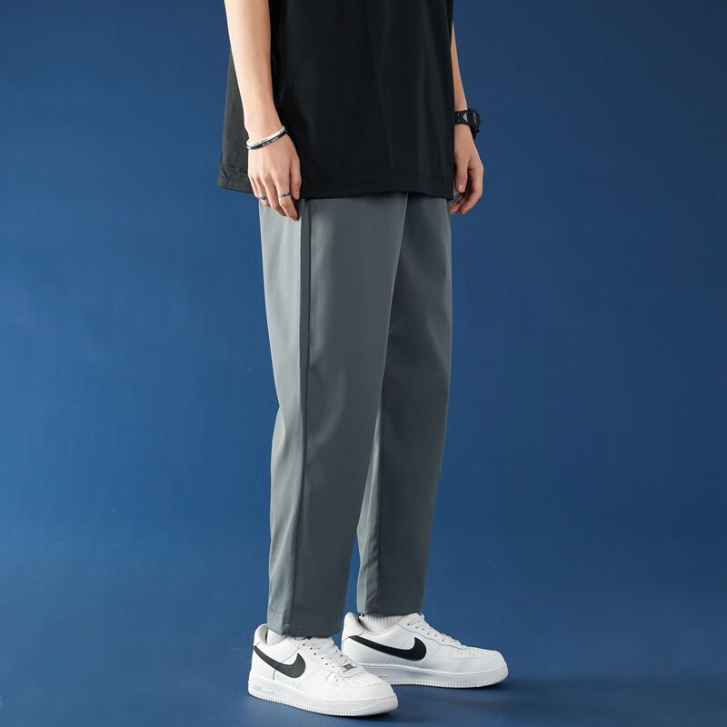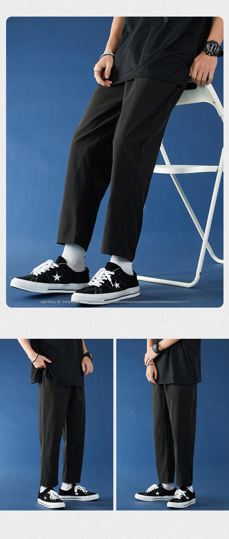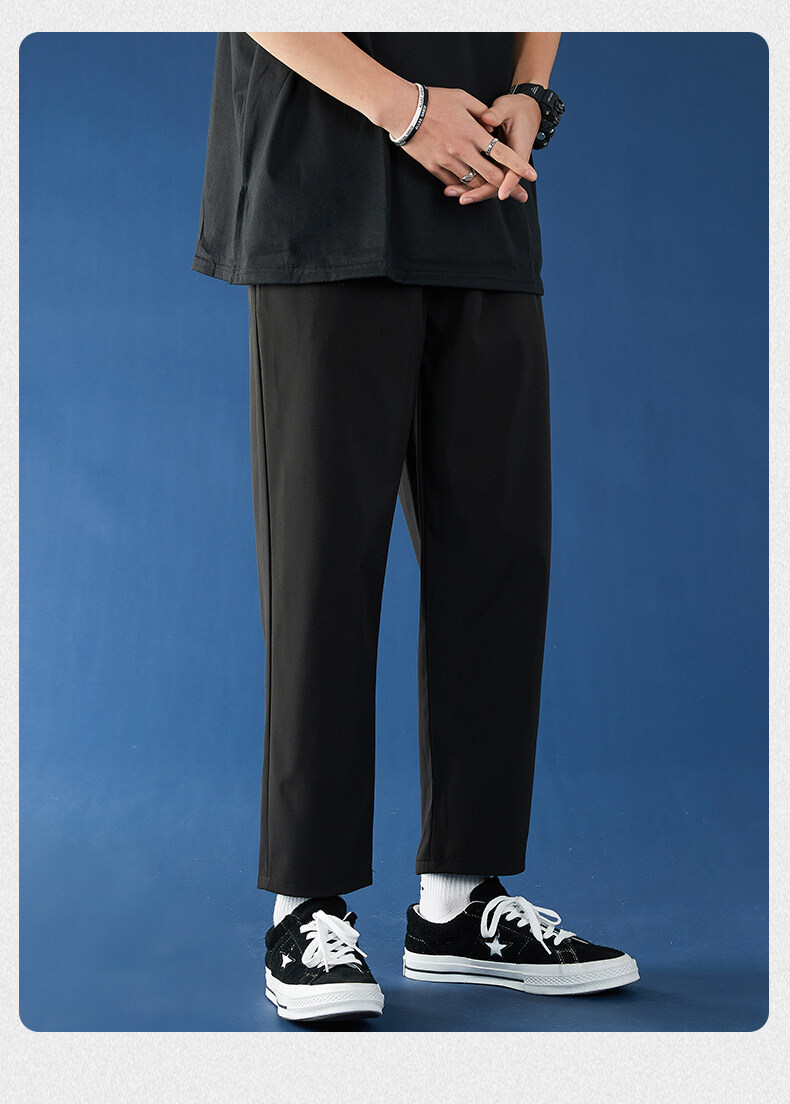 冰丝裤包边小西裤男垂感九分裤子韩版潮流修身纯色休闲裤男士直筒