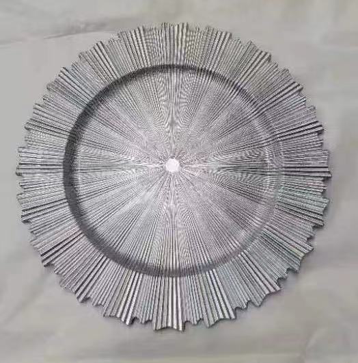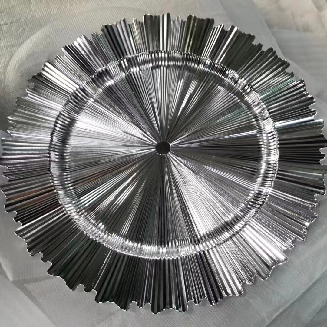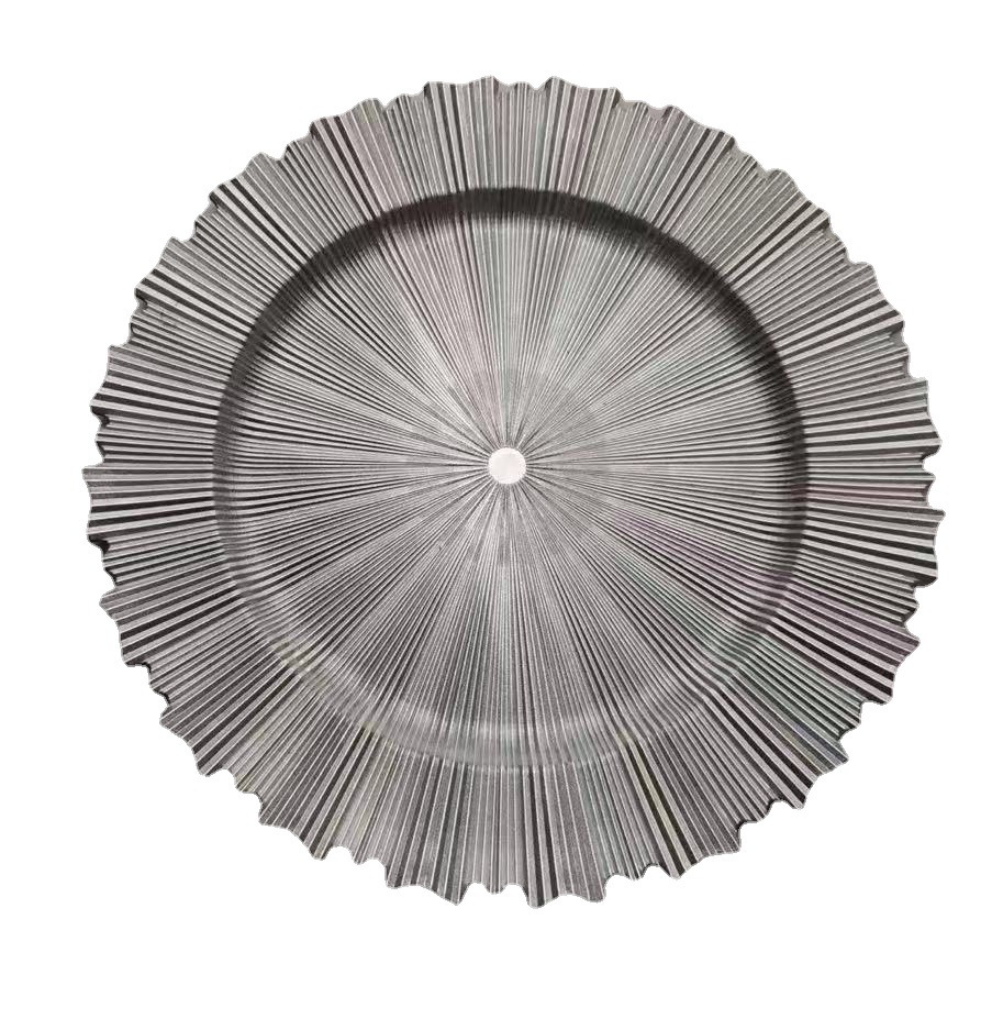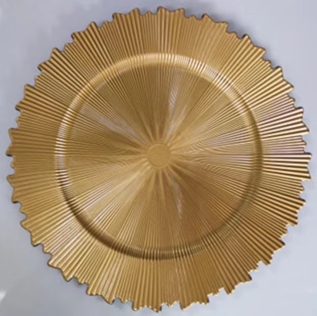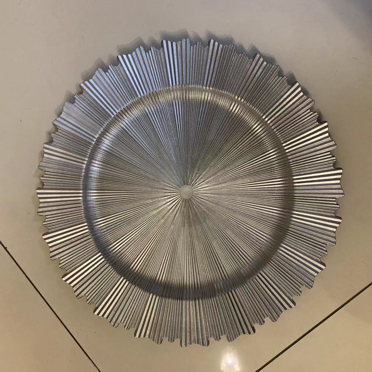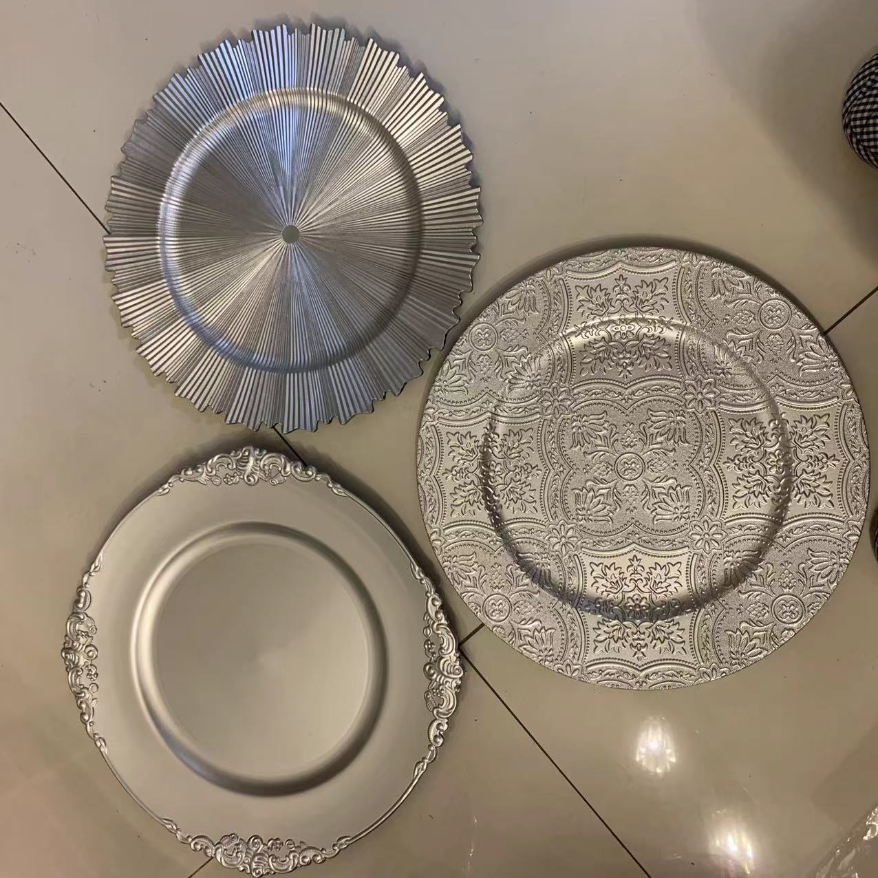外贸颜色婚礼酒店派对电镀喷漆工艺装饰塑料主盘chagerplate