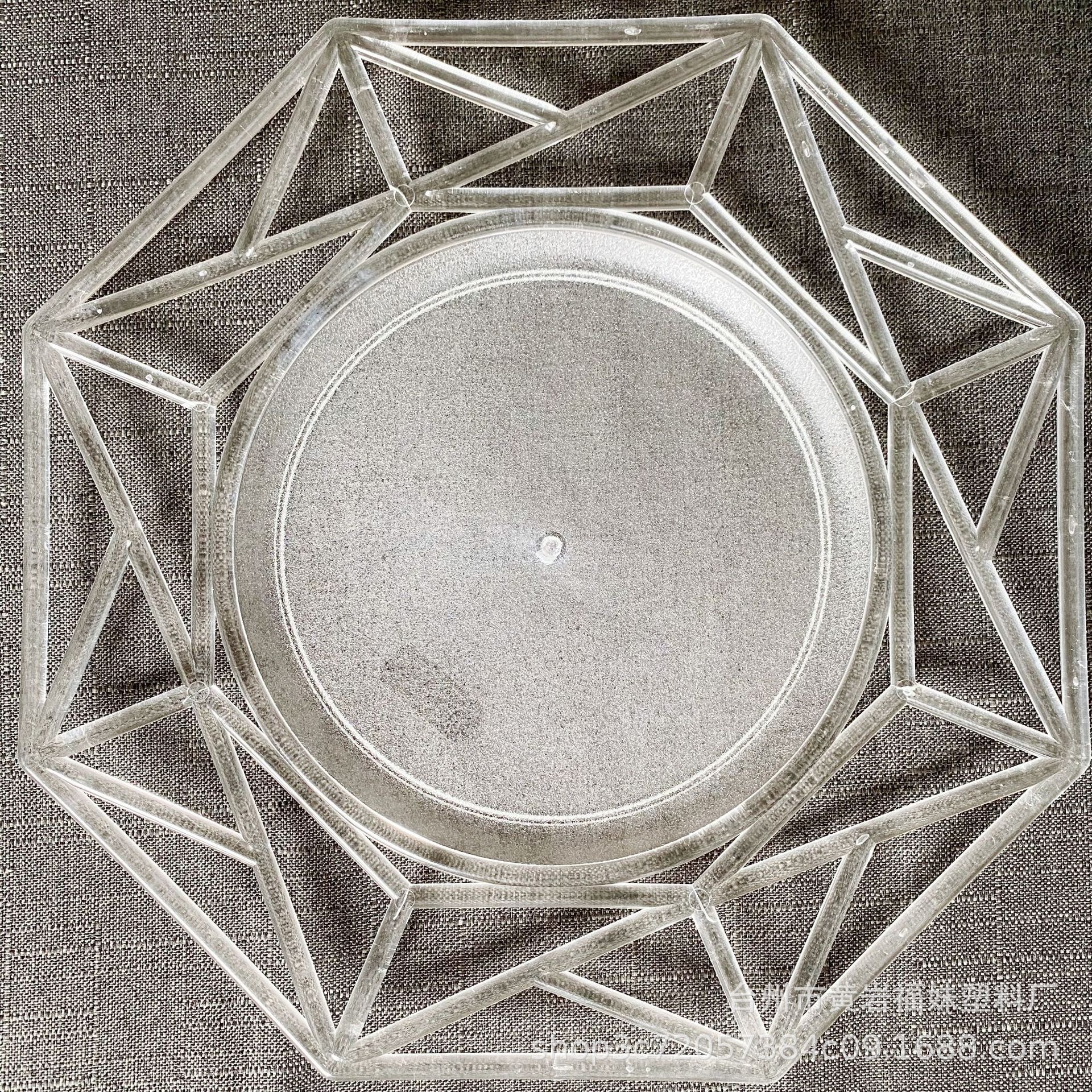外贸透明婚礼酒店派对烫金工艺装饰塑料玻璃主盘chagerplate