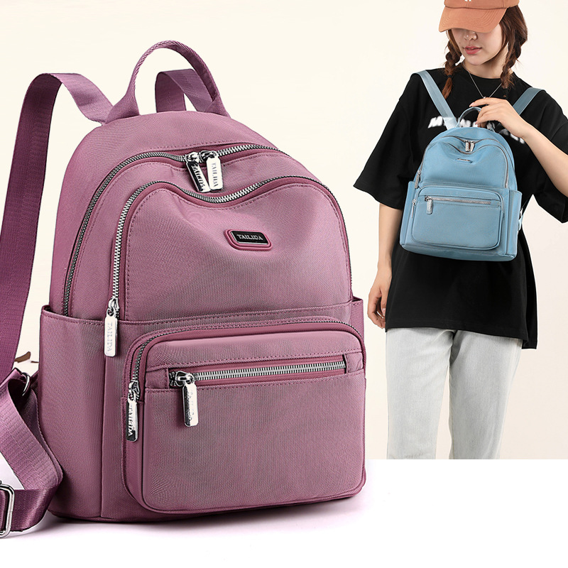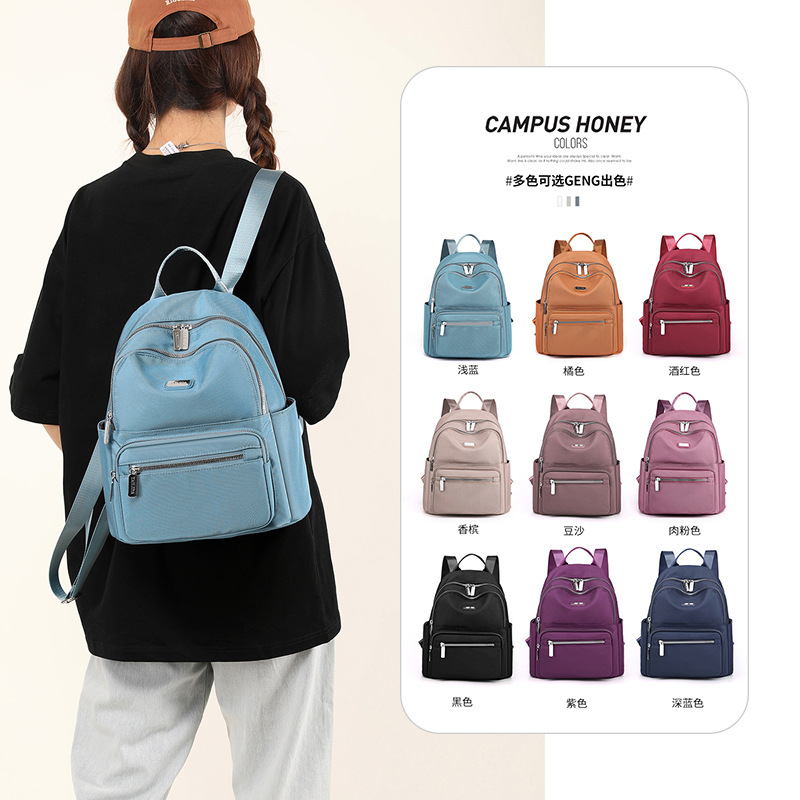 双肩包女新款简约学生书包时尚轻便纯色旅行背包潮