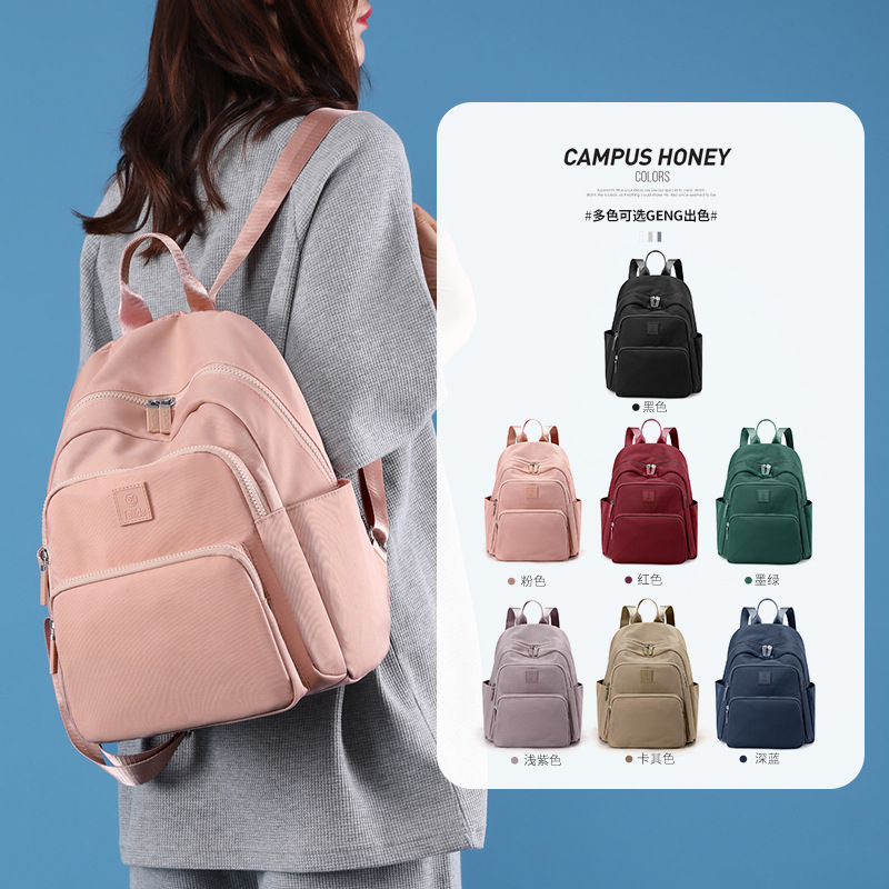 新款牛津布双肩包女简约书包尼龙轻便旅行背包