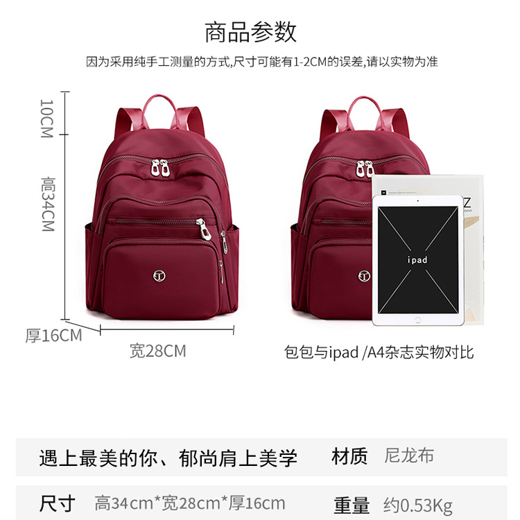 新款百搭牛津布双肩包女韩版简约书包尼龙轻便旅行背包