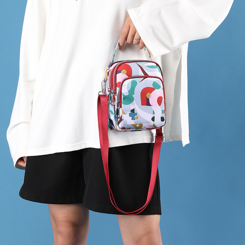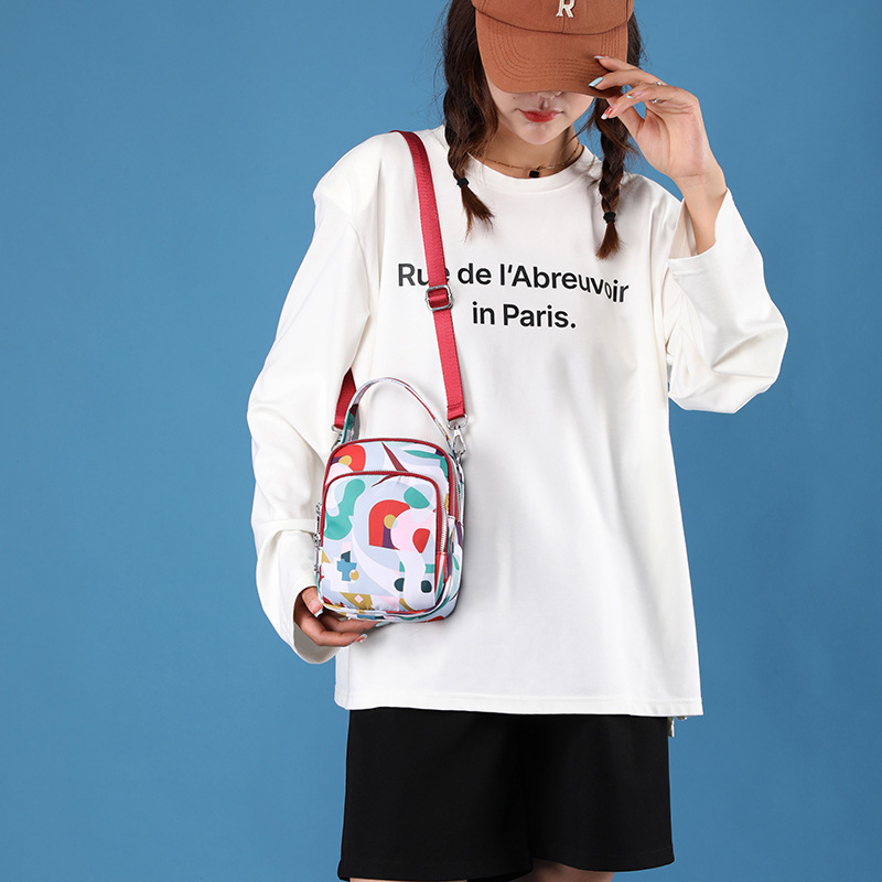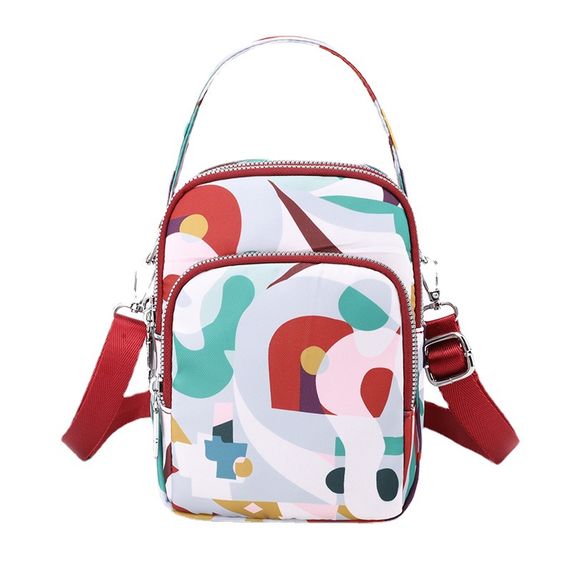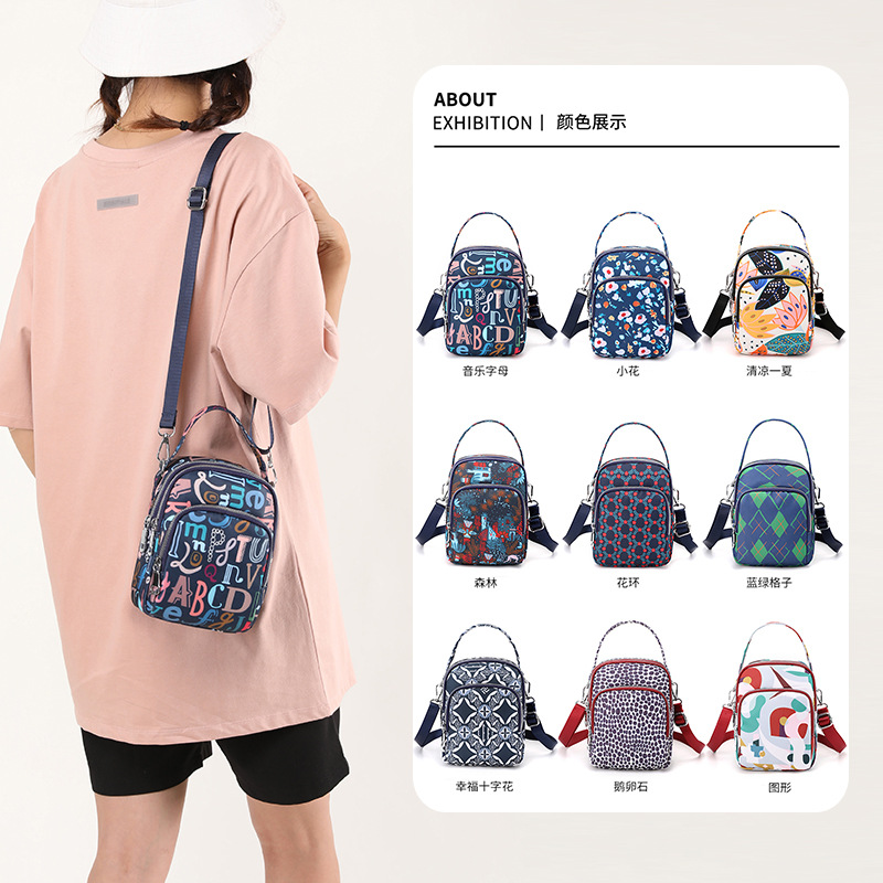 新款时尚尼龙花色手机包休闲单肩斜跨手提小包批发