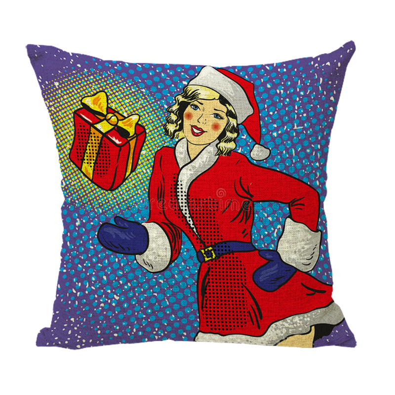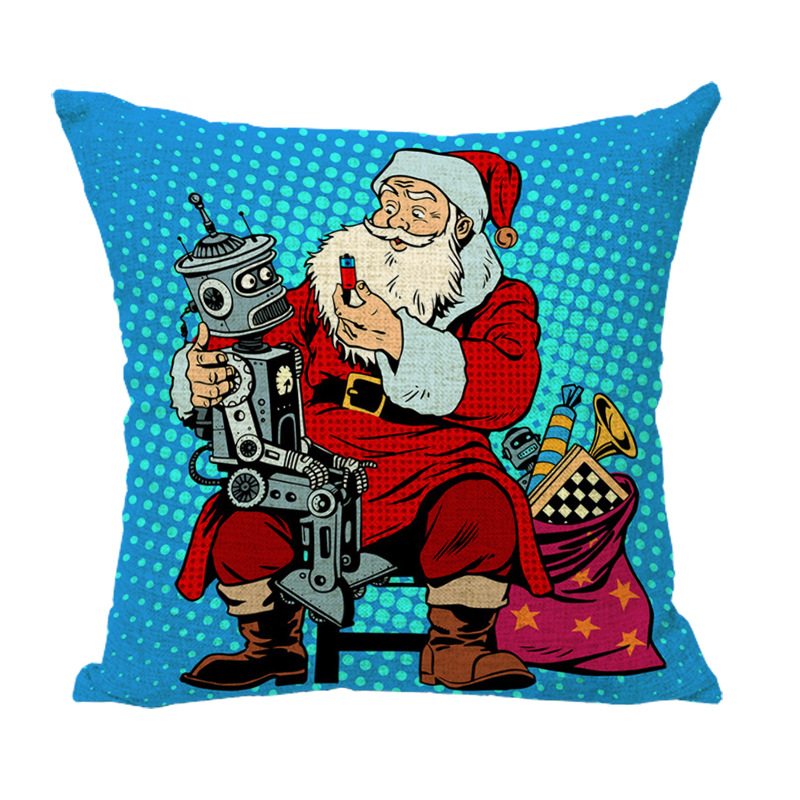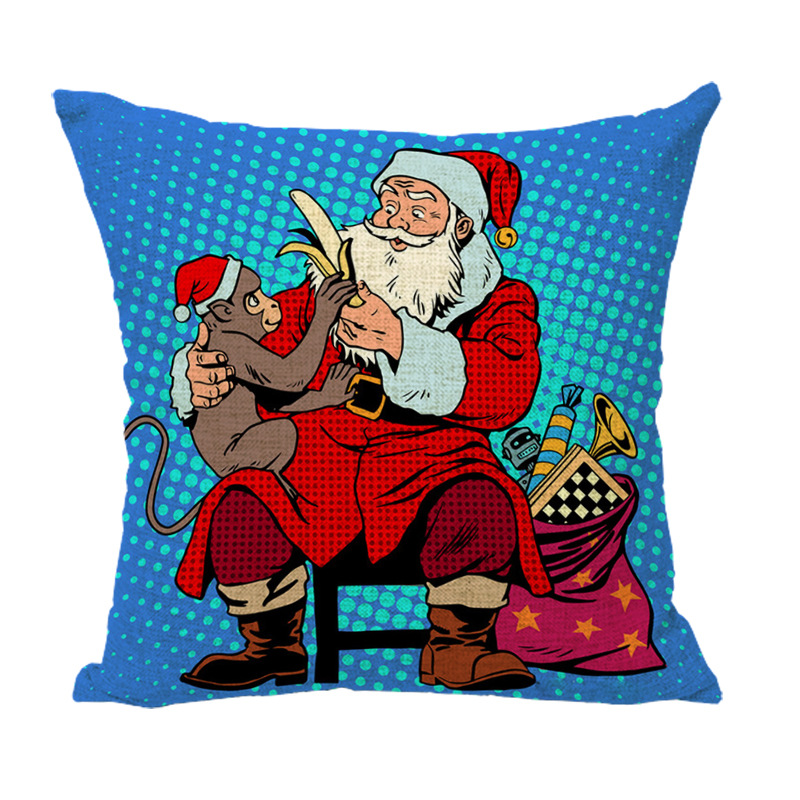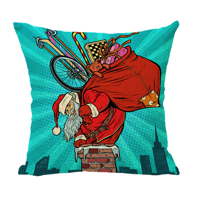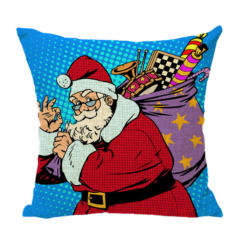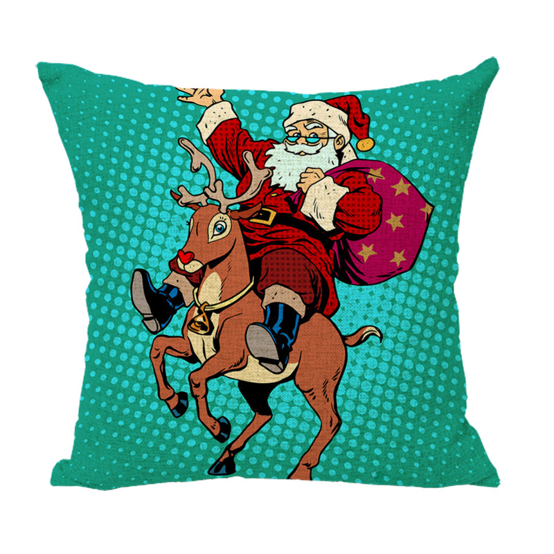 亚马逊新款圣诞抱枕套圣诞老人亚麻印花靠枕套客厅沙发居家靠垫套