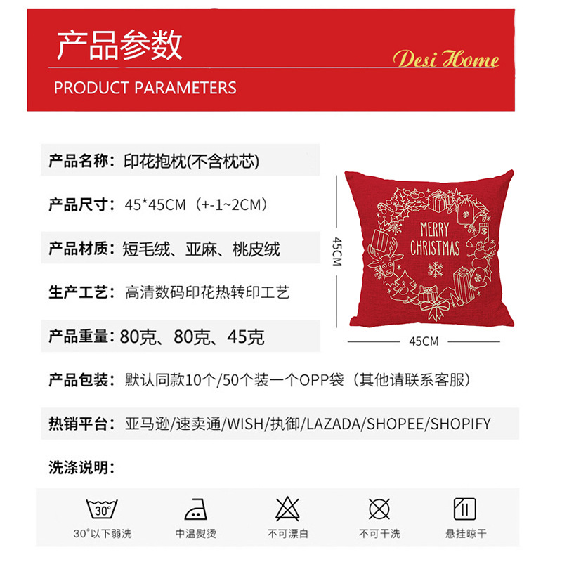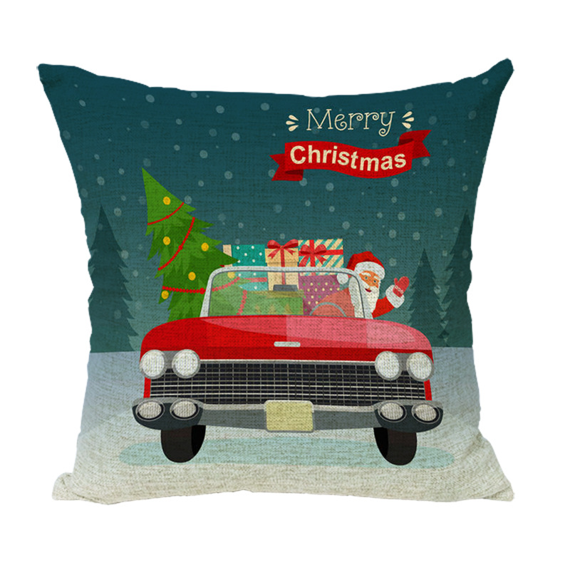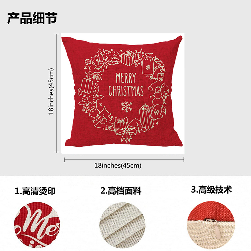 2025新款亚马逊圣诞抱枕套家居欧式亚麻靠垫套圣诞老人沙发靠枕套