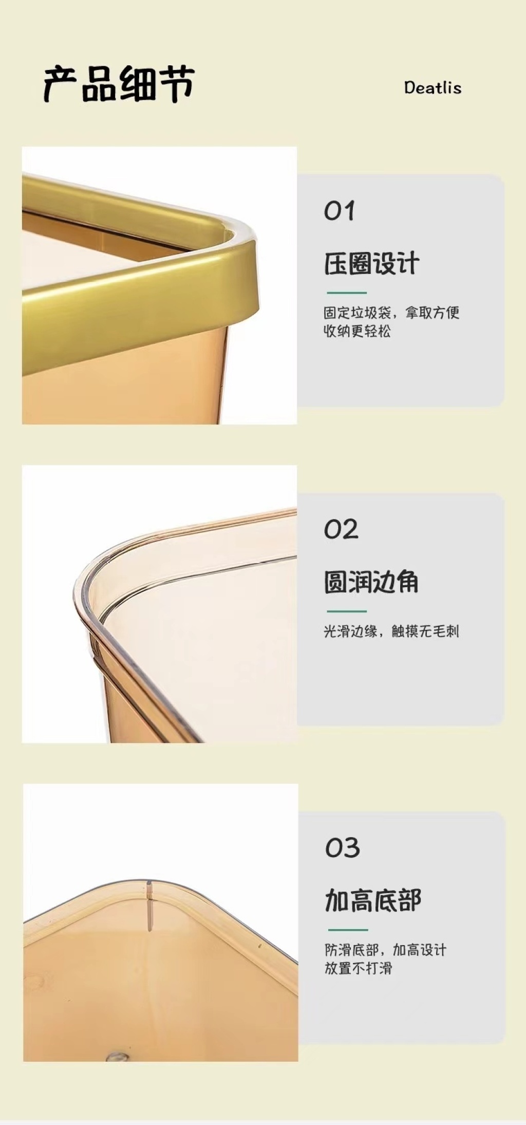 X78-6006PET透明垃圾桶轻奢收纳桶大容量压圈纸篓办公室醒花桶